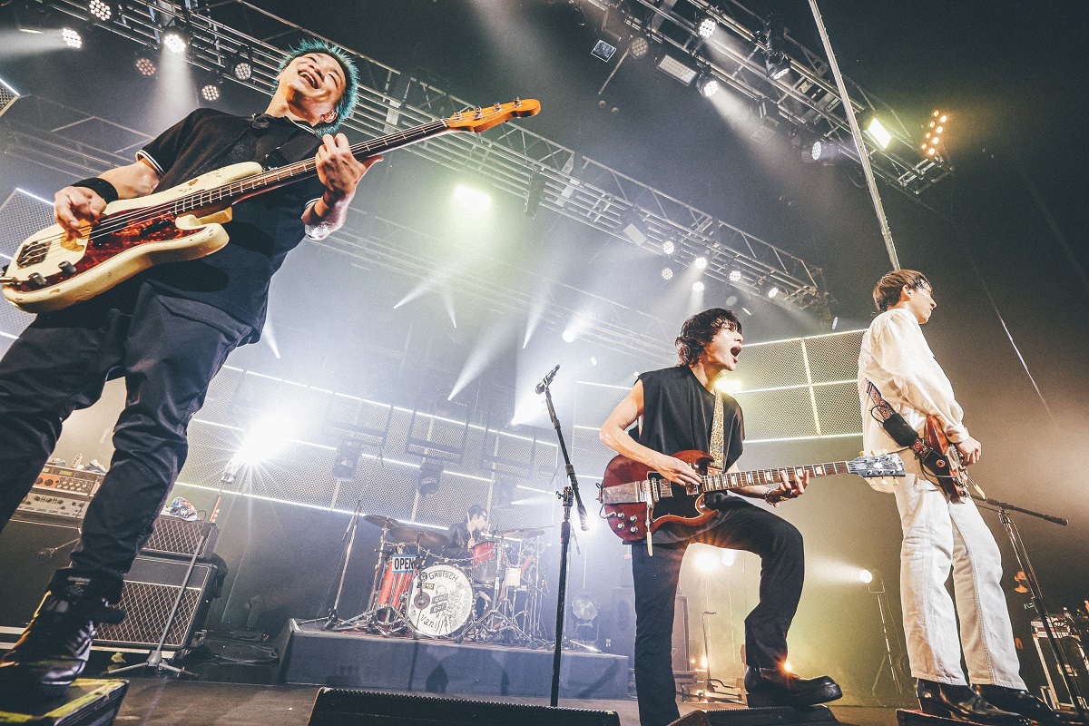 弾き語りでの歌い出しで「東京の未来に~♪」と歌詞を替え、それを聴いた観客が拍手で返したのは「アメイジングレース」。こういうライブならではの光景はいつ見てもたまらないが、ライブ感といえば「お子さまプレート」も外せない。「This is Rock ‘n’ Roll !!」と牧が叫び、ジェットセイヤ(Dr)が中指を立ててからのアウトロでは、ギラギラの照明の下、全員がガムシャラに楽器を鳴らしまくる。柳沢 進太郎(Gt)がひたすらに弾き倒すラストまで最高だった。爽快な「SUMMER BREEZE」。それぞれのソロも熱量マックスだった、4人ボーカル曲「デッドマンズチェイス」。長谷川プリティ敬祐(Ba)の「E」「M」「A」ポーズからの「エマ」。これらはいずれもライブ定番曲だが、フレーズの絡み方やグルーヴ、そもそもの音の鳴りが以前とは大きく違っていて、ツアーでの進化が読み取れる。シンガロングがなくても寂しくないのは、私たちが声を出せない分、メンバーが大きな声でコーラスしているからだろう。結果、観客のジャンプで床が揺れるほどの盛り上がりに。牧が「楽しんでますかー!?」と尋ねれば、わーっと拍手が発生する。