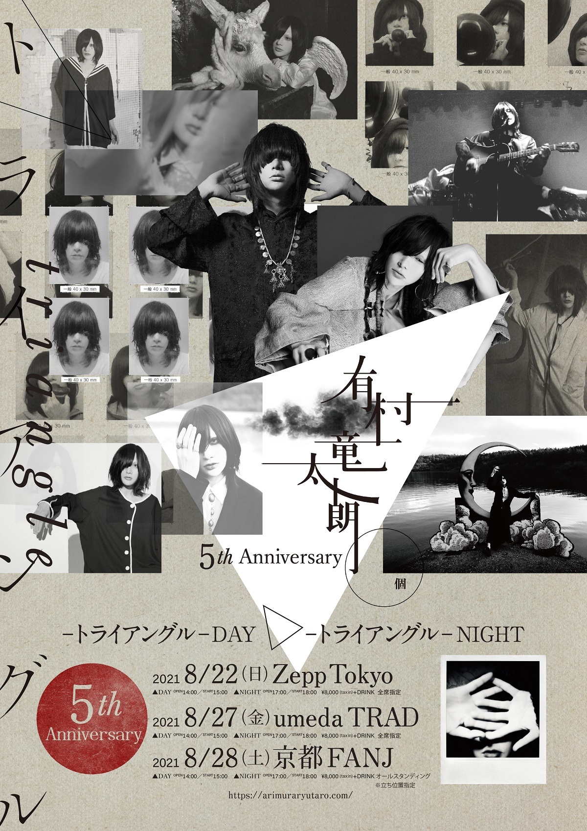 5周年のキックオフとして開催される『有村竜太朗 5th Anniversary Tour -トライアングル-』は、感染症の影響もありライブツアーとしては2019年8月の『ACOUSTIC LIVE『Op.』』以来およそ2年ぶりとなり、本人にとってもファンにとっても待望のライブツアー。“トライアングル”というサブタイトルには、東京・大阪・京都の3か所をめぐるという意味と、ツアー開催時期である夏の夜空に輝く3つの一等星を線で繋ぐと現れる「夏の大三角形(Summer Triangle)」のダブルミーニングが込められており、コトバを大切に紡いできた彼らしい遊び心にあふれたものとなっている。