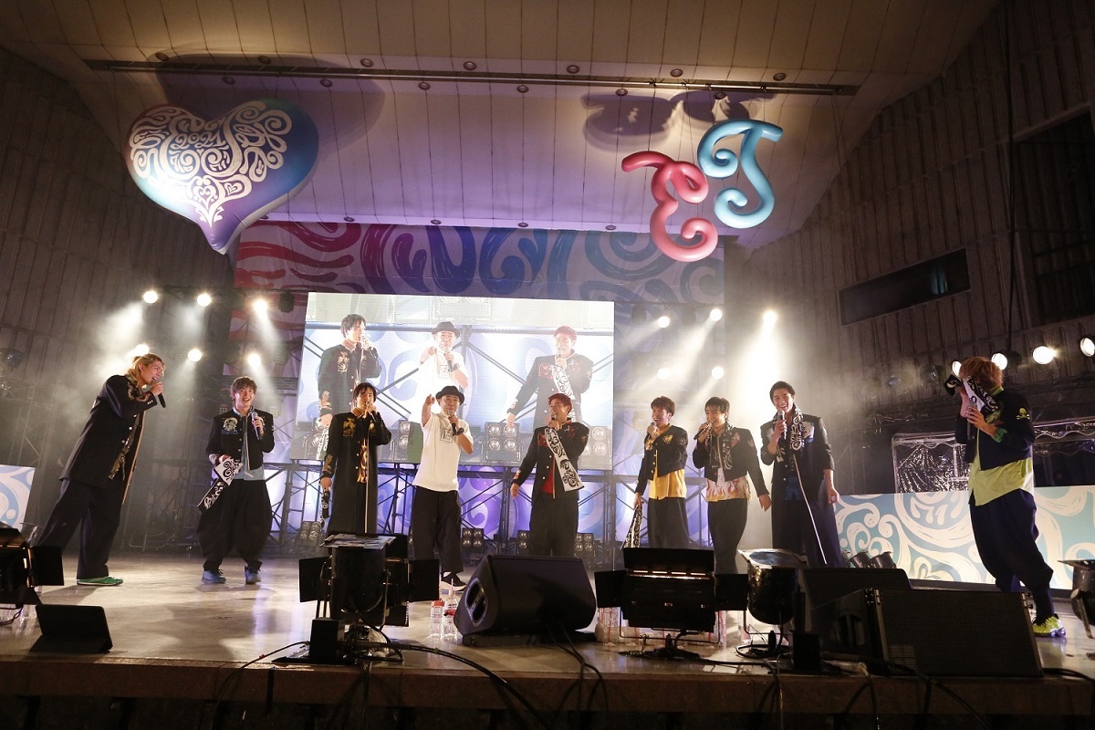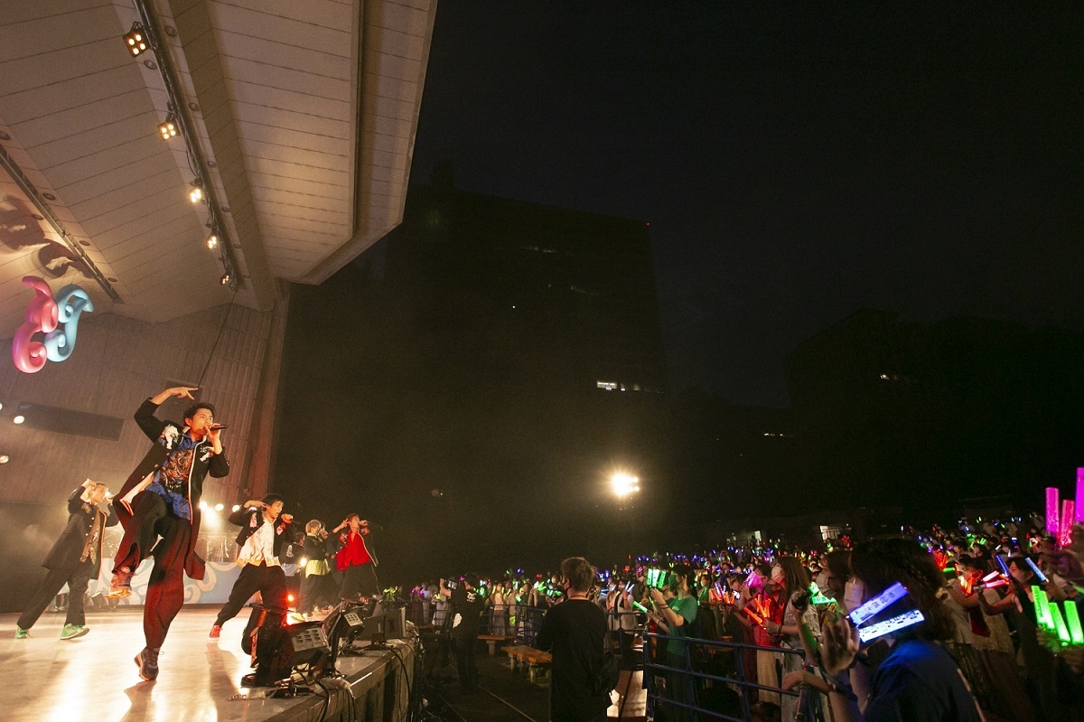 この日が初めての“野音”のステージとなったボイメン。このイベントへの出演が決定した時から、アーティストの聖地である野音に立つことができることを楽しみにしていたそうで、メンバーの水野も「数々の有名アーティストたちが立った野音にボイメンも立てるなんて光栄!」と意気込みも語っていただけに、のっけからテンションは最高潮。「帆を上げろ!」からスタートすると、ライブでは定番楽曲である「D.T.G」などを披露し会場の熱を一気に上昇させた。