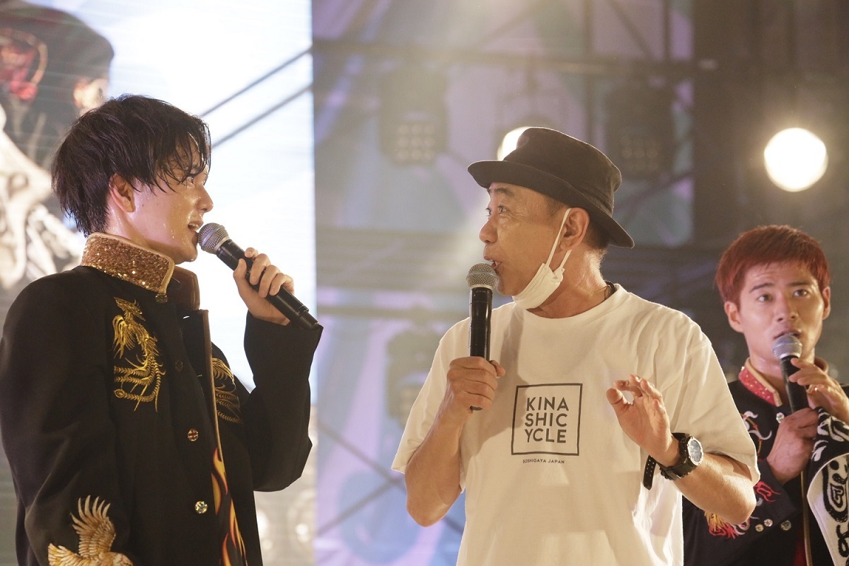 さらにこの日の午前中に、ボイメンの水野と辻本がTBSラジオ『木梨の会。』の生出演と、そのメディアミックスであるGYAOの配信番組『木梨の貝。』の収録をしたことがきっかけで、木梨憲武がボイメンのライブに急遽乱入するというサプライズが。「今日のライブ見にいくよ」との約束を本当に果たした上に、7月28日にリリースされるボイメンのカップリング楽曲である「TRAIN-TRAIN」を一緒に披露する展開に。憧れの木梨憲武の登場に、辻本は「ラジオの時にちょっと話しただけだったけど、本当に来てくれるなんて思わなかった」と説明。水野も「憲さんの男気ですよ!」と驚きを隠せない様子だった。