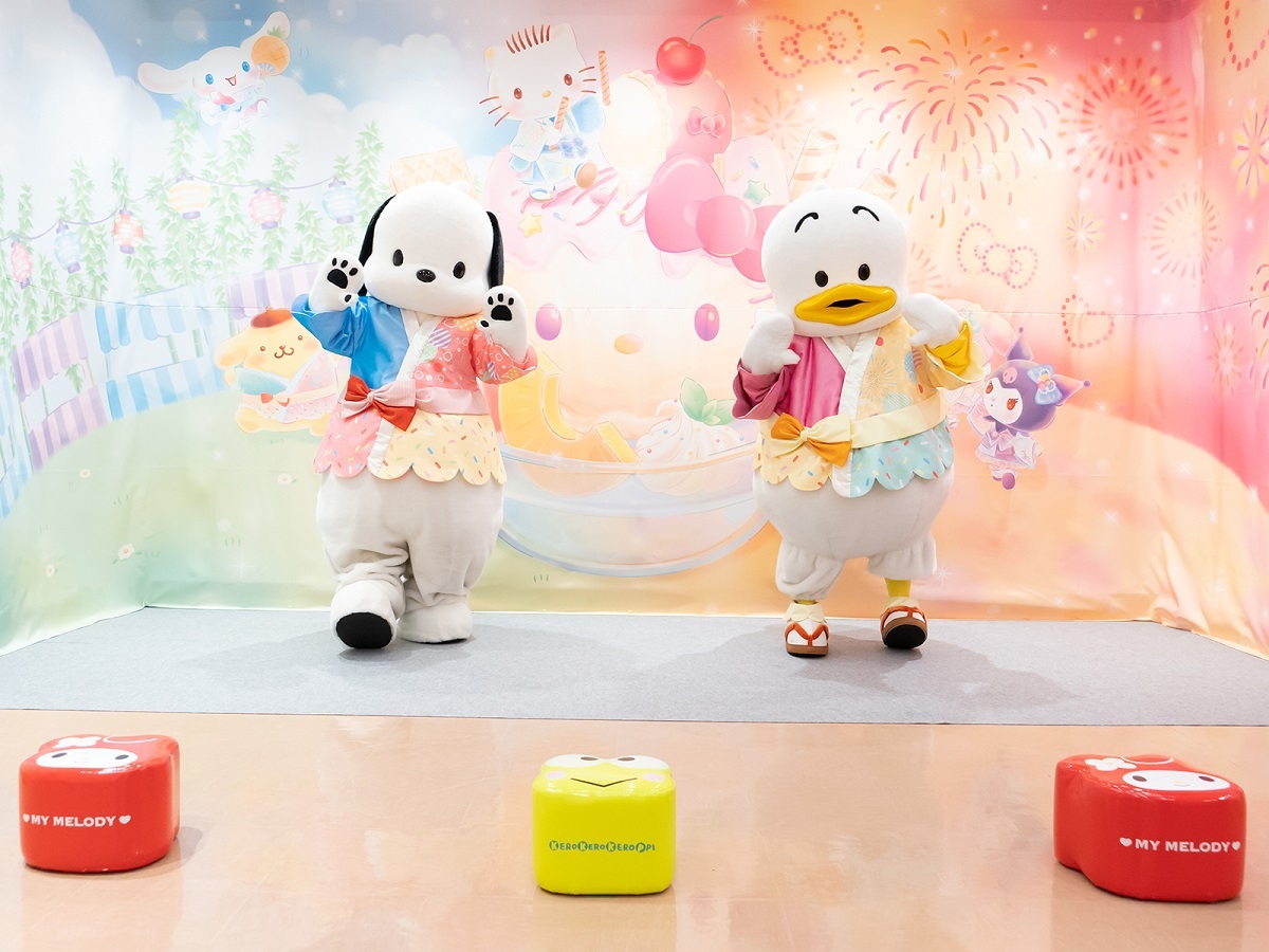 イベント初日は、エンターテイメントホールにて「ハローキティのポップンファンシー夏まつり」が初上演された。浴衣や法被を着たキャラクターたちによるダンスや太鼓のパフォーマンスにあわせ、一緒に踊って楽しむ来場者も多く、会場は一体感に包まれた。ピューロビレッジでのおえかきパラダイスでは、参加した来場者が自分の作品を探したり、スクリーンに映ったぬりえの写真撮影をしたりと思い思いに楽しんだ。