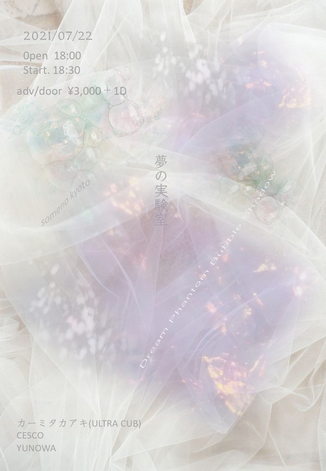 関西を中心に活動するアーティスト3組による音楽の実験型イベント『夢の実験室』が7月22日(木・祝)someno kyotoにて開催される。