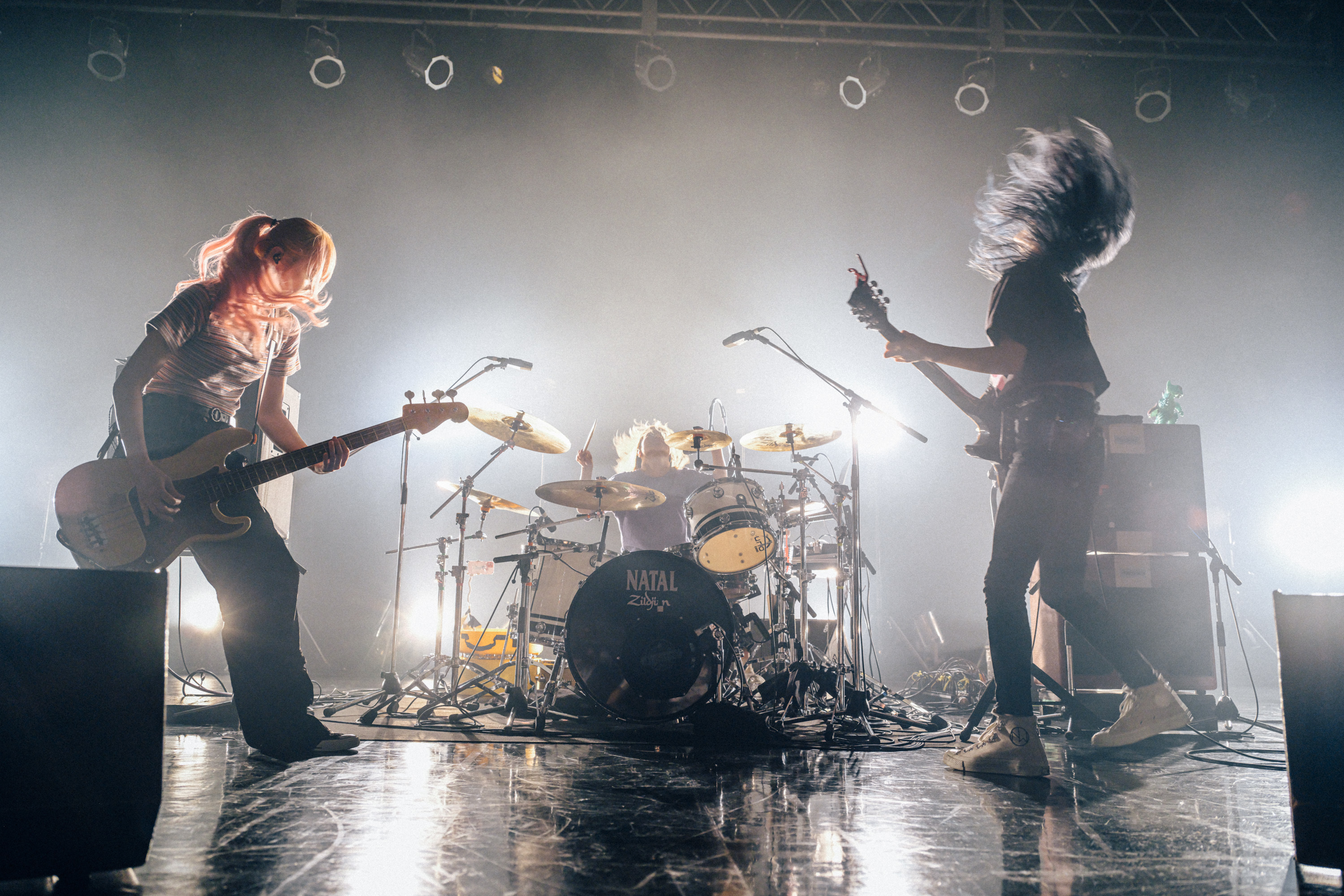 ステージは中盤戦に。生き急ぐような性急感で爆音を鳴らす「ネバーランド」。“まだ見ぬ未開の地がどこにあっても見つけ出すんだ!”とフロアのみんなをフックアップする。ディスコティックなthe peggies流パーティーチューンの「Unleash」では、Saucy Dog同様にスリーピースバンドとは思えない、多彩なアンサンブルの引き出しを開けてみせる。切ない恋心を歌う「花火」にスケールの大きなバラードの「アネモネ」でグッと気持ちを惹きつける。
