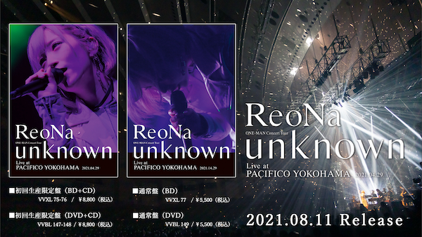 また、4月29日にパシフィコ横浜・国立大ホールにて開催されたワンマンライブ『ReoNa ONE-MAN Concert Tour "unknown"』を収録したBlu-ray /DVDの発売が8月11日に決定。初回生産限定盤と通常盤がリリースされ、初回生産限定盤には特典CDとして、昨年12月8日にLINE CUBE SHIBUYA(渋谷公会堂)にて開催された『ReoNa Online Live "UNDER-WORLD"』のライブ音源CDが同梱される。