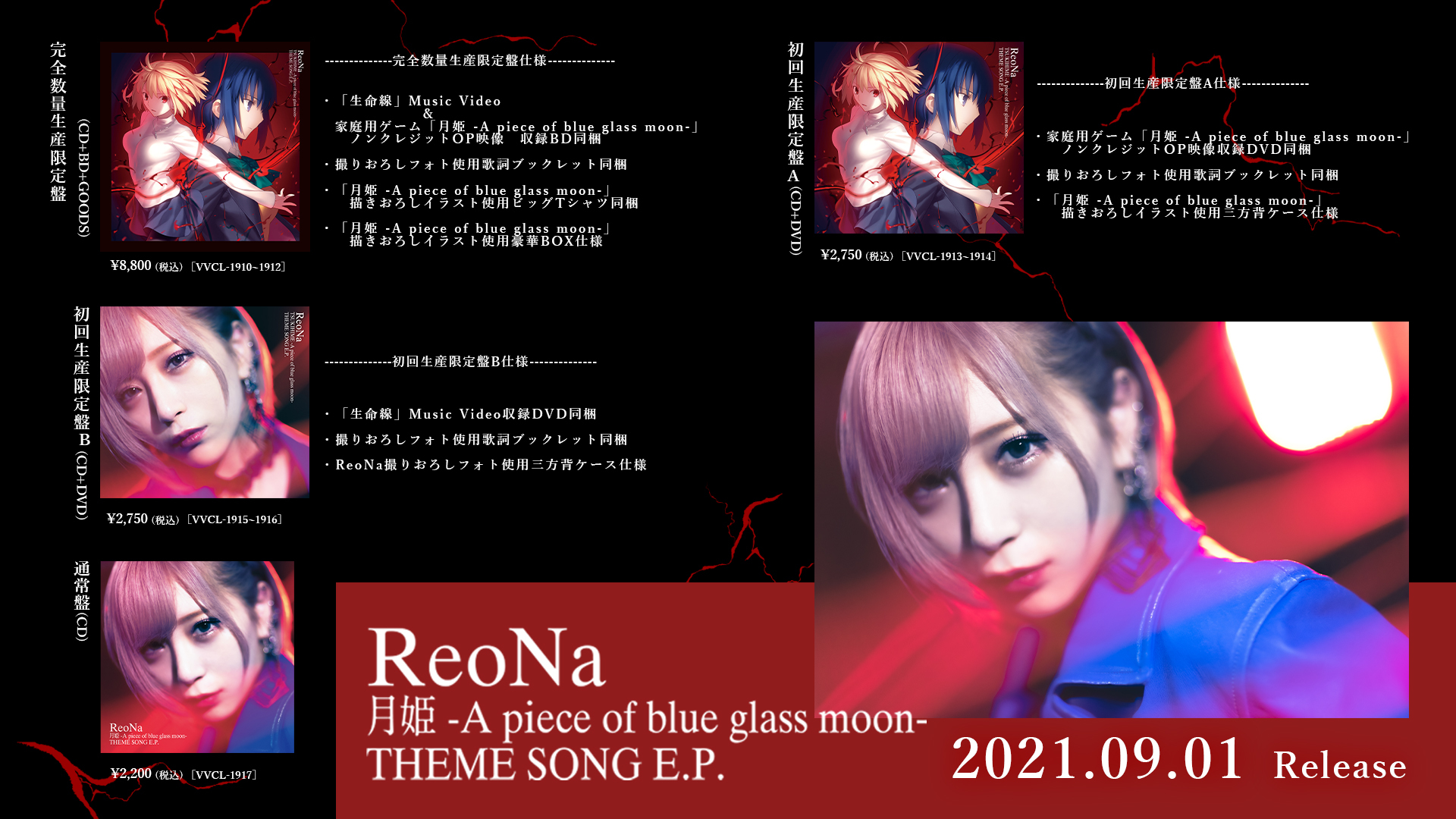 ReoNaが、8月26日発売予定の家庭用ゲーム『月姫 -A piece of blue glass moon-』の主題歌「生命線」を収録したEP『月姫 -A piece of blue glass moon- THEME SONG E.P.』を9月1日にリリースすることが決定した。