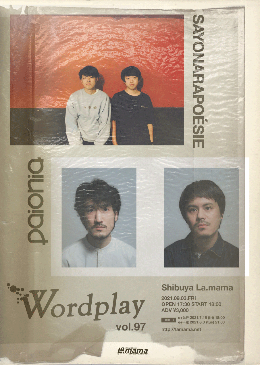 また9月3日には、さよならポエジーとpaioniaの2マンライブが開催される。こちらもお馴染みのイベントとなっている『Wordplay』で、こちらは80名限定の有観客のみで行われる予定。