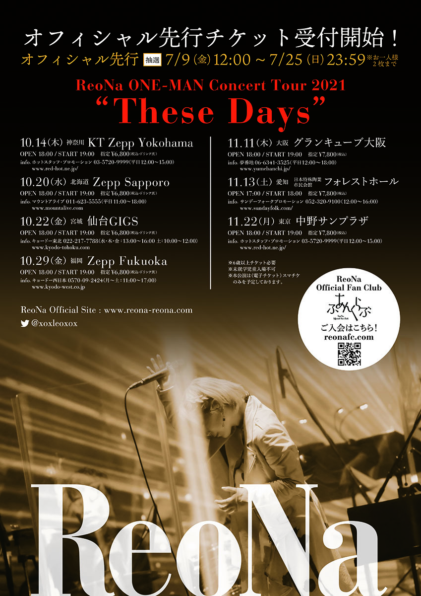 秋からは全国7か所をまわるライブハウス&ホールツアー「ReoNa ONE-MAN Concert Tour 2021 "These Days"」の開催も決定しているReoNaの活動に注目したい。