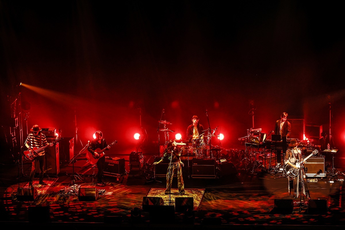 20年のキャリアを持つバンドならではの懐の深さを余裕とともに味わわせた前半と、いまだエネルギッシュなロックンロールバンドとして圧倒的な姿を見せつけた後半。そのギャップも楽しませたLOVE PSYCHEDELICOは、アンコールにムーディーな「Standing Bird」ともう1曲、“みんなのために歌います”とアコースティックタッチの「A DAY FOR YOU」を披露。そのアウトロを、全員が冨田政彦(Dr)を囲むように演奏しながら、彼らが持つピースフルな魅力を印象づけ、2時間を超える熱演を締めくくったのだった。