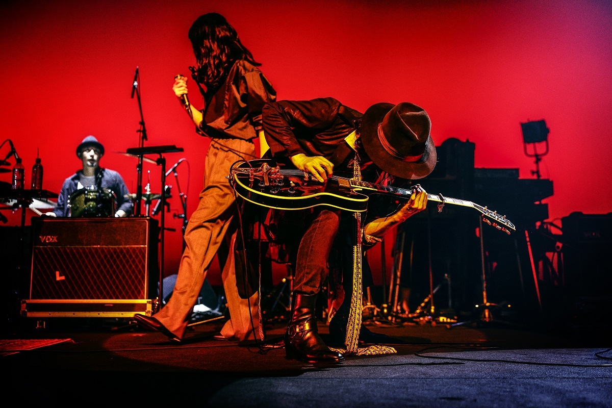 そんな中盤のブロックから、後述するようにがらっと様相を変える後半戦に繋げたのが、跳ねるリズムに胸が躍るポップソングの「This Moment」。KUMIとまるでデュエットするようにNAOKIがギターでメロディアスなフレーズを奏で、観客を沸かせると、NAOKIがスライドギターのフレーズをルーズに鳴らした「Swingin’」からの後半戦はライブバンドとしてのLOVE PSYCHEDELICOの魅力を存分にアピールしていった。