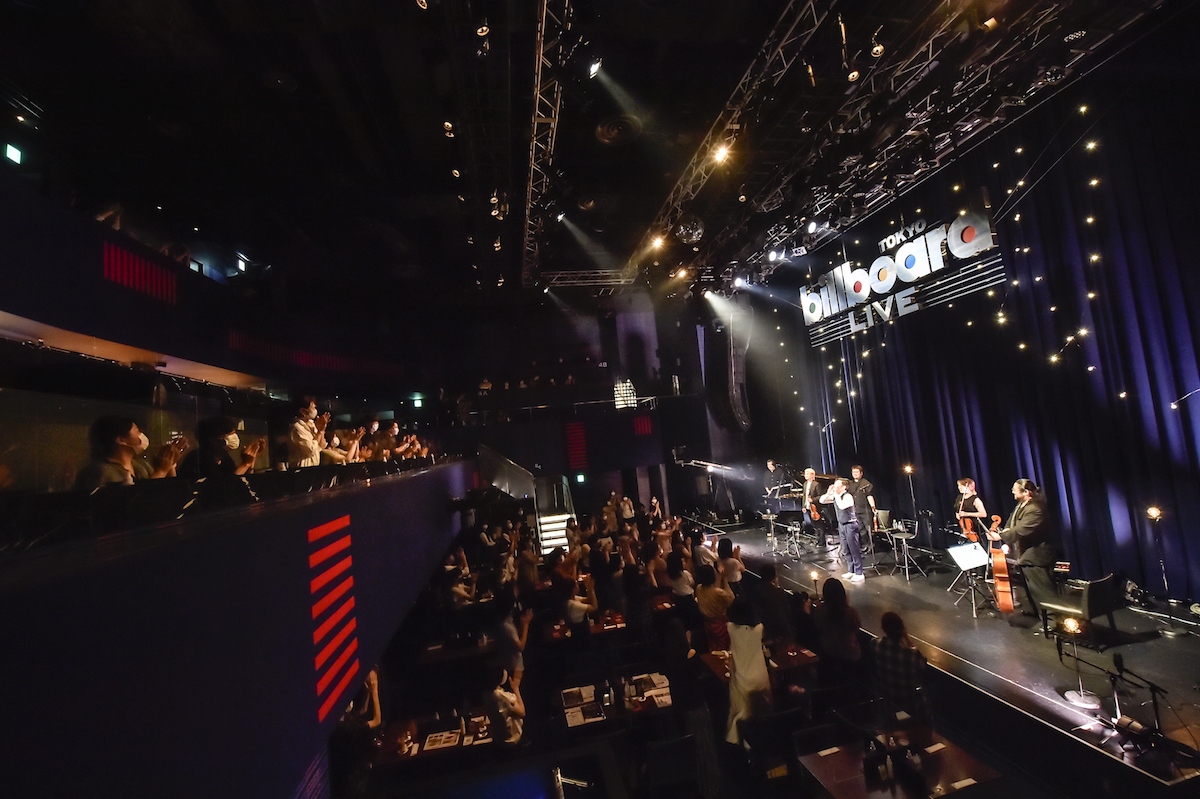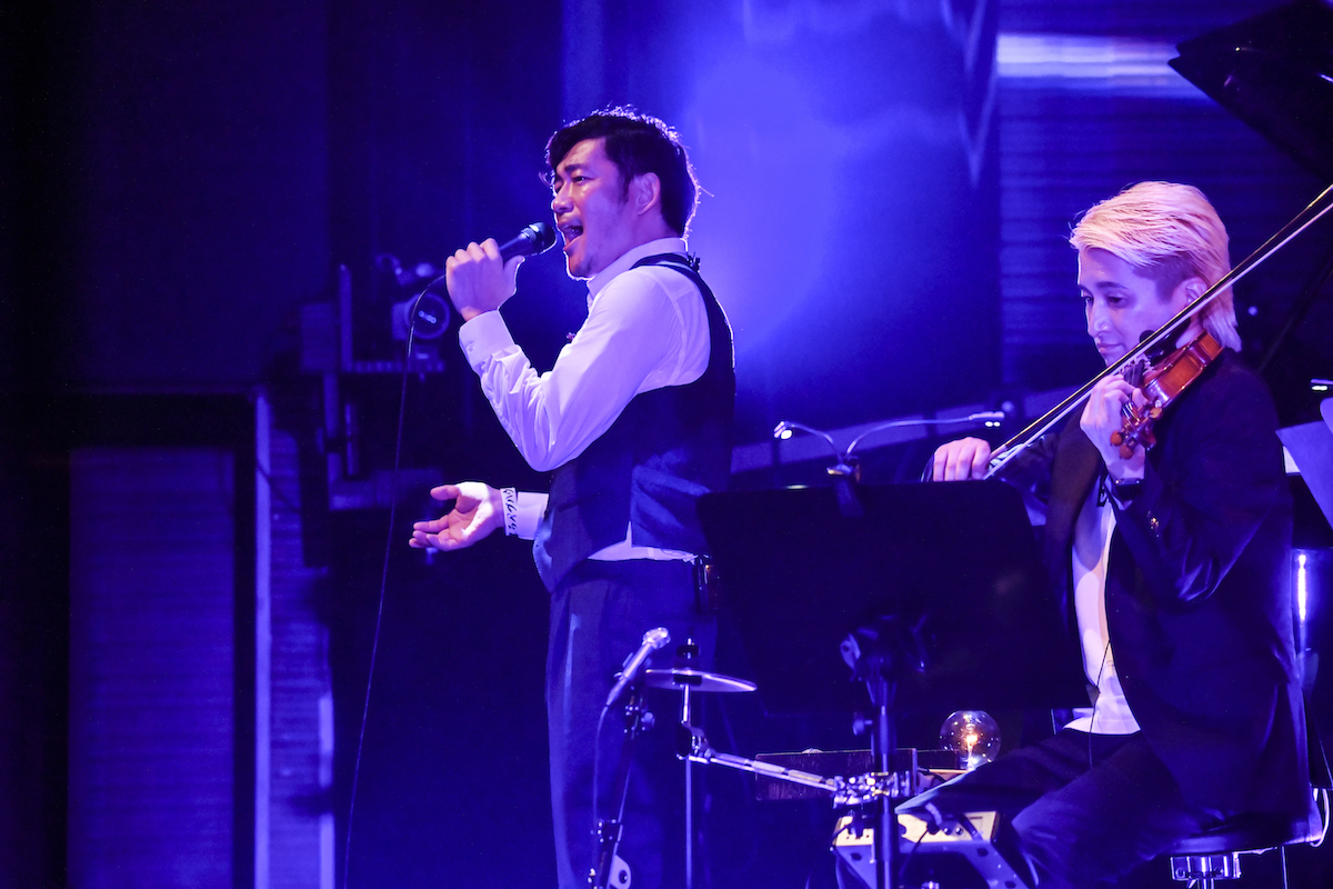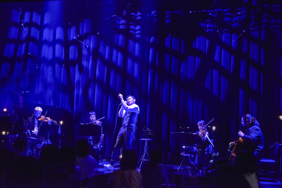 そうして演奏されたのは「今夜」。ステージを上手から下手までまわりながら丁寧に歌い上げるTOSHI-LOWと、弦楽カルテットとピアノとで生み出す音たちが、それまで以上にギュッと一丸となって聴こえたのは気のせいじゃないだろう。全ての曲目を終え、背後の紗幕が開いて露わになった夜景を背負ったTOSHI-LOWが、指揮者のようにカルテットに起立を促したあと、悪戯っぽく笑いながら客席側にも同じ動作をしてみせた。結果、ちょうどスタンディングオベーションのような格好となって、大喝采に包まれながらライブは幕を下ろしたのだった。