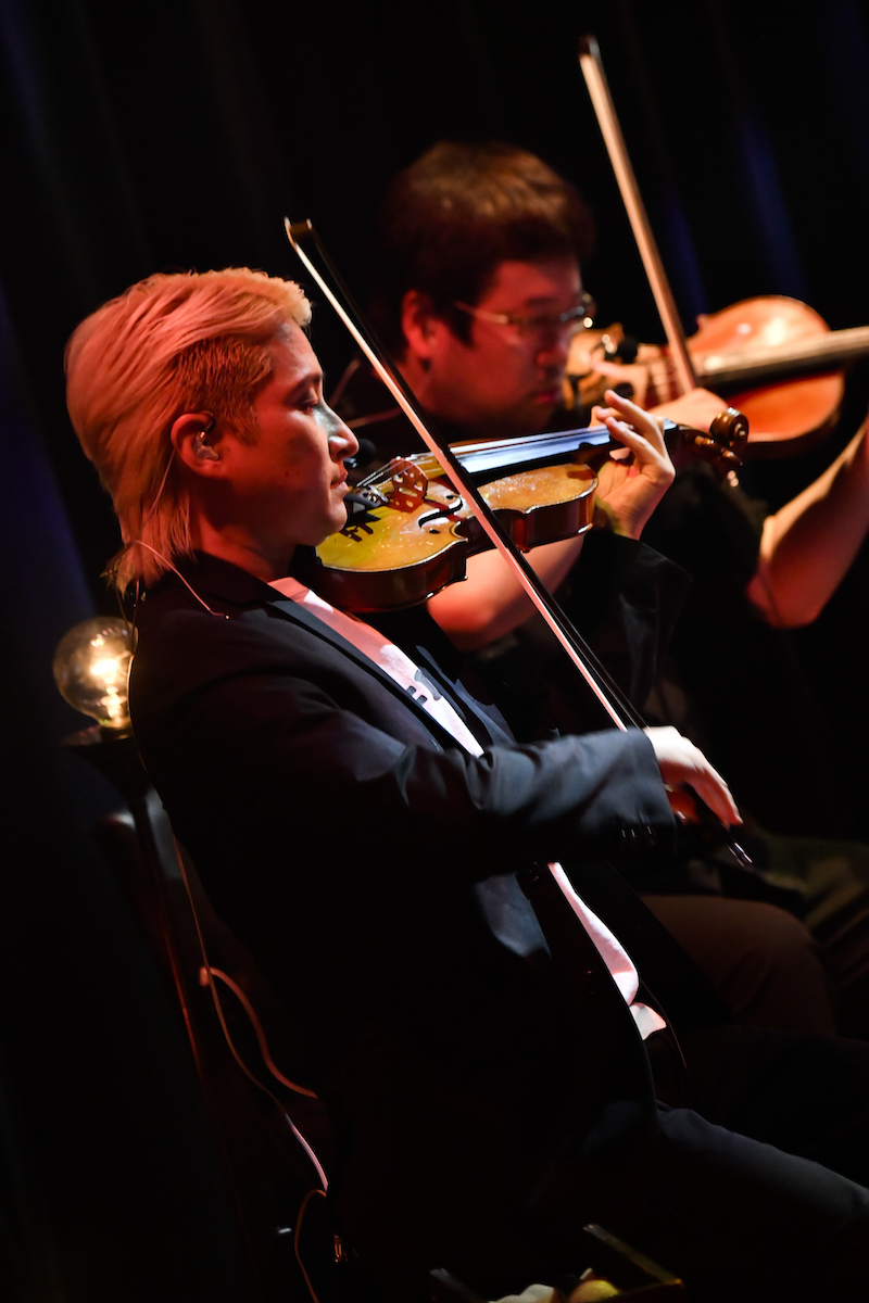 「DEEP」や「BASIS」といった初期の、今以上にパンキッシュな楽曲たちも演奏された。指板をタップする奏法を交えたりはするものの、ビートを刻む楽器が不在の編成なのに、アンサンブルの向こうから疾走する2ビートや8ビートのドラムが聴こえてくるような気がするから不思議である。会場がビルボードで、演奏しているのは弦楽四重奏にも関わらず、座席から身を乗り出すようにして拳を突き出す観客が何人もいる光景は、この『ROCKIN’ QUARTET』ならではだ。