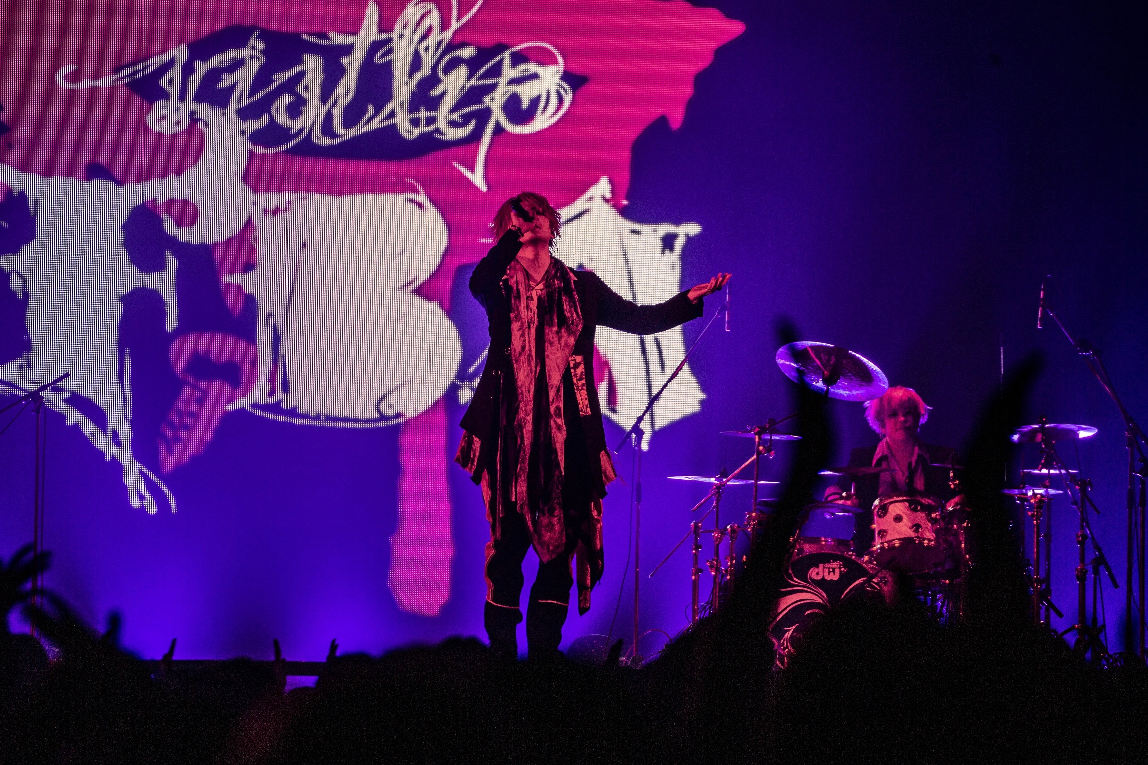 ライブエンターテインメント業界では恒例になっているかもしれないが、ライブ前のアナウンスで「どこまでの応援行為が可能です」というレギュレーションが示される。この日は「ヘドバンするなら髪の毛をくくってから」「声援はダメだけど、手拍子で応援してください」「ジャンプもOK」といった注意事項がアナウンスされた。ヴィジュアル系は特に激しい振り付けなども多いため、会場によってどれくらいの行為が許されるのか、事前にレギュレーションが公開されていることが多い。暗転した会場に虹色のレーザーが散りばめられ、SEが流れ始めた際には、ファンもしっかりレギュレーションを守り拍手でお迎え。