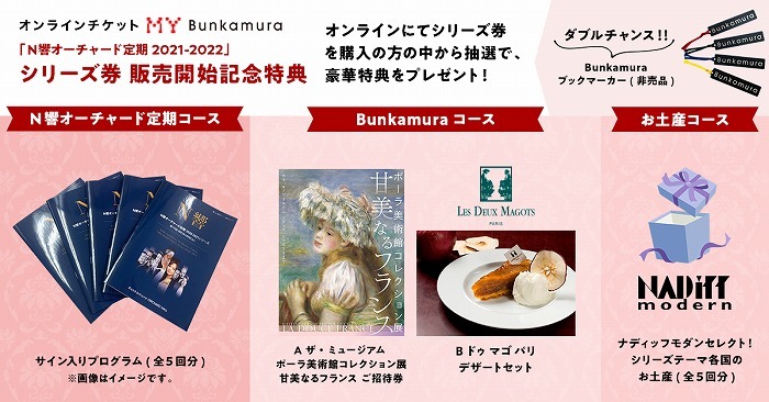 全5公演がセットになったシリーズ券も販売中。オンラインチケット MY Bunkamura(登録無料・座席指定可)でのシリーズ券販売を記念して、購入者限定で<総計150名様(抽選)>に豪華特典が当たるキャンペーンを実施中だ(【応募期間】 7月1日(木)~8月15日(日))。