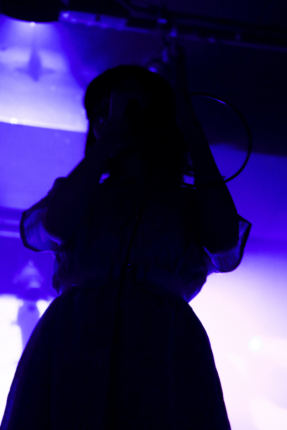空白ごっこの楽曲は、メンバーであるコンポーザーの針原翼とkoyori、そしてセツコの3人がそれぞれ手がけていることもあり、自然とバラエティ豊かなものになっている。そんな様々な色を持った楽曲群を続々と畳み掛けていったのだが、セツコは怪しいサウンドに身を委ねながらクールな歌声を届けたり、カオティックに繰り広げられるアンサンブルの中で囁いたり、ファルセットを織り交ぜながら叫ぶように歌い上げたりと、曲ごとにその表情を切り替えていく。また、「ストロボ」では、客席を見渡しながらクラップをしたり、先日発表したばかりのアッパーな最新曲「ハウる」では、うねるベースとダンスビートが高揚感を煽る中、手を左右に振りながら歌ったりと、オーディエンスと共にライブ空間を作り上げていた。