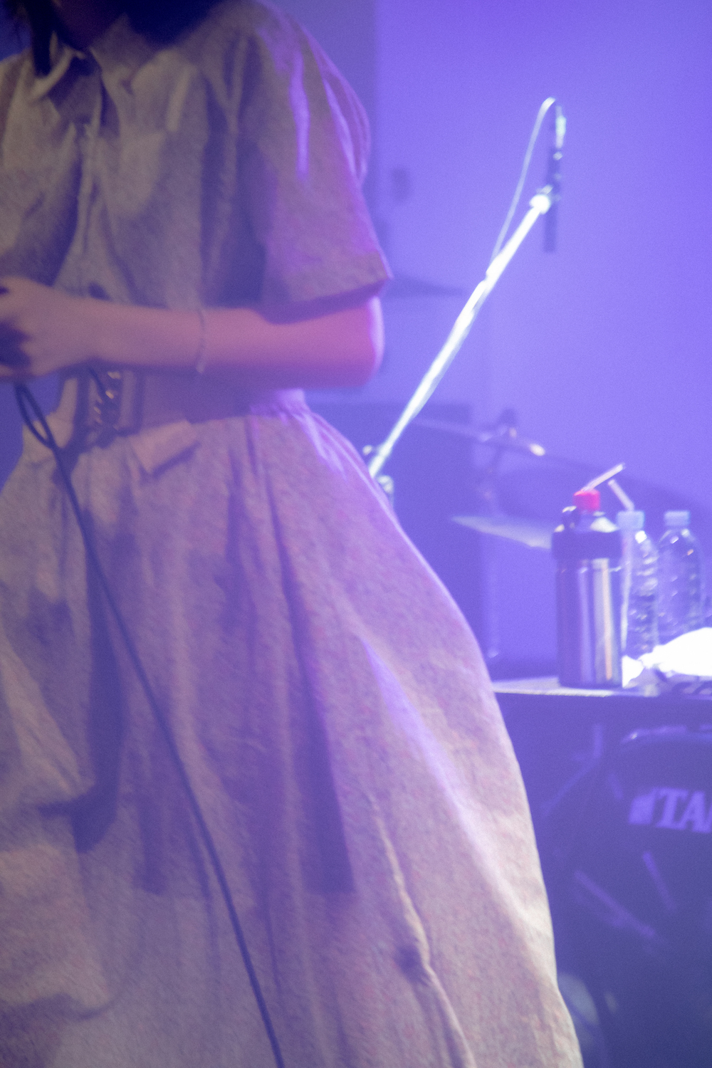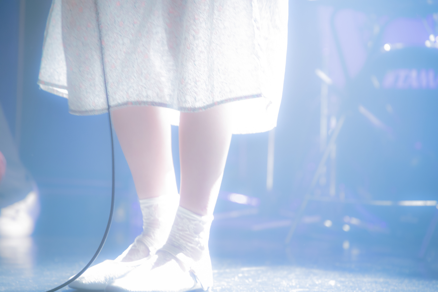 先日行なったインタビューで、初ライブに対してちょっとした怖さがあるということを話していたセツコ。この日のライブは、出だしこそやや固さがあったのだが、曲が進んでいくごとに緊張の糸が少しずつほぐれていった。声もどんどん伸びやかになっていき、2ビートを交えたメロコア風な「リスクマネジメント」を歌っている姿は、全身でライブを楽しんでいることがしっかりと伝わってくる。感染症対策から声を出せない客席も手拍子や腕を掲げて熱気に呼応し空白ごっこの世界に酔いしれているのを充分に感じた。ここから残りの9公演で、さらに表現力に磨きをかけていくだろう。