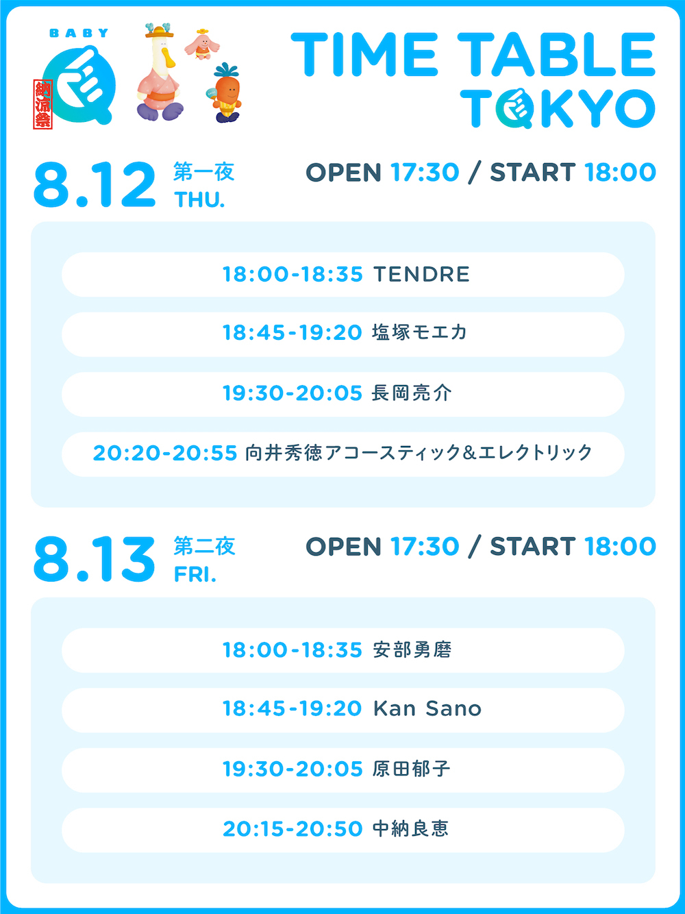 『BABY Q 納涼祭』東京場所タイムテーブル