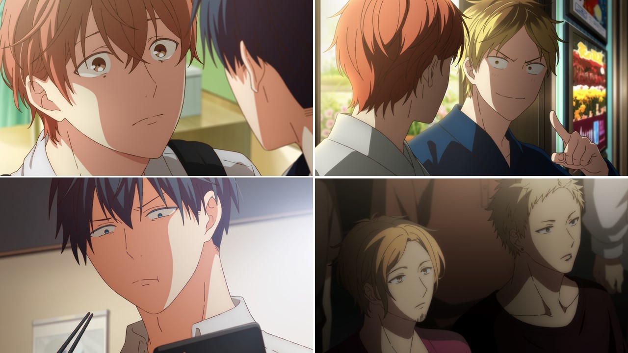 『映画 ギヴン』では、大人メンバーである、春樹(CV:中澤まさとも)、秋彦(CV:江口拓也)、雨月(CV:浅沼晋太郎)の切ない恋模様がメインだったが、新作アニメ『ギヴン うらがわの存在』は、大人メンバーの葛藤の“うらがわ”で、高校生メンバーの真冬(CV:矢野奨吾)と立夏(CV:内田雄馬)も壁にぶつかりながらもお互いに支え合い成長する姿が描かれる。