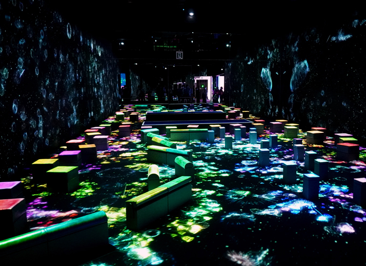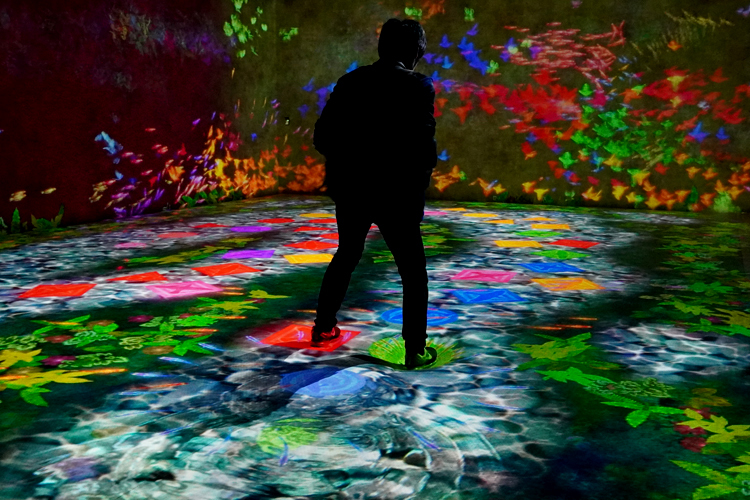 『チームラボボーダレス』の館内では、触れると色や形が変わるなど、インタラクティブな作品を楽しむことができる。また内容が季節や時間帯などの状況によって変わるため、何度来館しても新鮮な気持ちを味わうことが可能だ。観客は10,000㎡もの広大な空間で身体を使いながらさまよい、探索し、発見し、常に新しい体験を創り出すことになる。