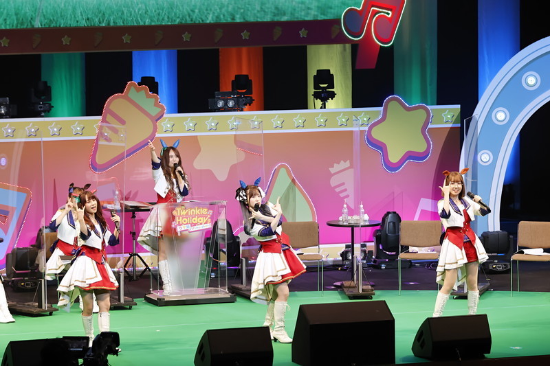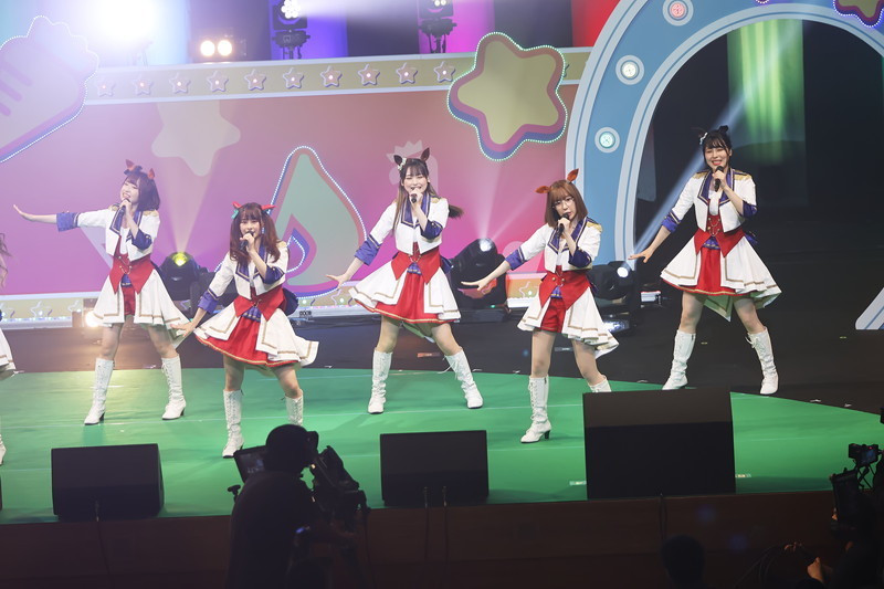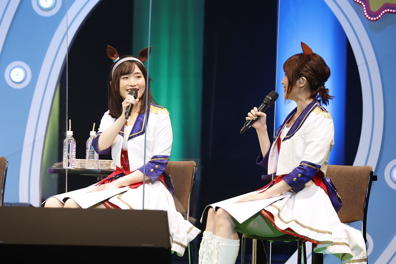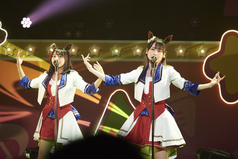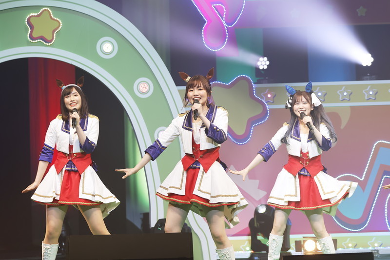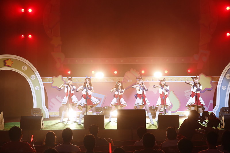 ゲームのアップデート情報や8月の3rdイベント、CDリリース情報や7月17日に放送されたNHK『シブヤノオト』での『うまぴょい伝説』披露への意気込みなどを語って、いよいよイベントは終盤戦のライブパートに。
