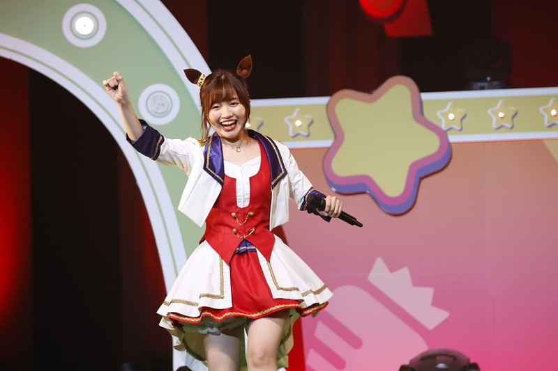 星谷「ウマ娘としてパフォーマンスさせていただくのは今日が初めてだったんです。収録などでは一人でがんばってきたんですけど、こうしてアニメやゲームで知ってもらって、今日ステージに立たせてもらって、『ウマ娘』の一員になれたんだなって実感が湧いてきて、トレーナーさんやスタッフさんや色々な人に応援してもらっているんだなと感じている日々です。これからも皆さん一緒に盛り上がっていきましょう!」