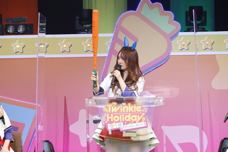 TVアニメ第2期の振り返りが一段落したところで、続いてのコーナー「Twinkle Holiday記念!チーム対抗3番勝負!」がスタート。トウカイテイオー役・Machico、キタサンブラック役・矢野妃菜喜、サトノダイヤモンド役・立花日菜、ナリタブライアン役・衣川里佳、マヤノトップガン役・星谷美緒のチーム「仲間で☆ライバル」と、ナイスネイチャ役・前田佳織里、ツインターボ役・花井美春、イクノディクタス役・田澤茉純、メジロパーマー役・のぐちゆり、ミホノブルボン役・長谷川育美のチーム「温度差」(メンバーのテンション差が激しいという理由で命名)に分かれての対抗戦に。