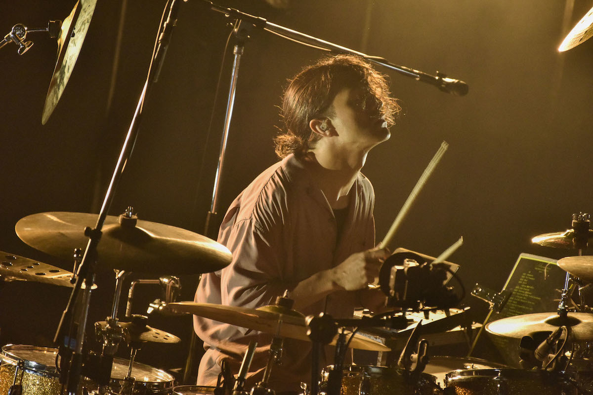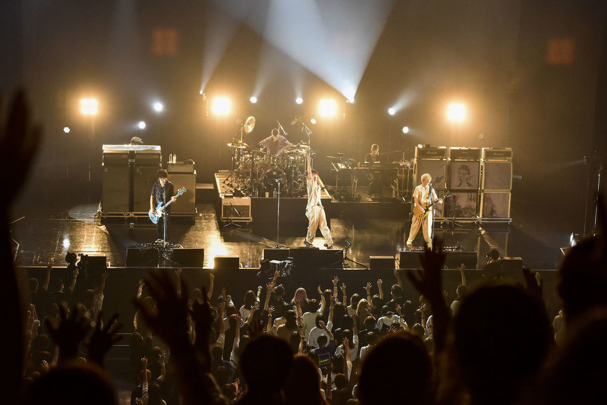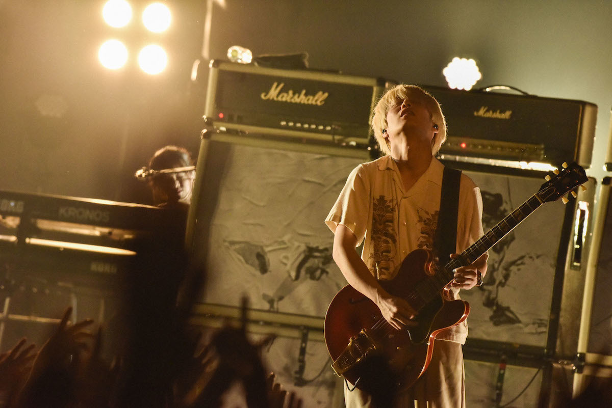 「下北沢にあるUKプロジェクト、我々が所属している『RX-RECORDS』は、もともとメロコアのレーベルでした! 我々は本来、もっともっと『暴れる』バンドです。本当はモッシュ、ダイブ、リフト大歓迎です! 今やれないその悔しさ、溜め込んでおけよ!」――そんなアグレッシブな川上の煽りから「Beast」の獰猛なヘヴィサウンドが会場を吹き抜け、映画『機動戦士ガンダム 閃光のハサウェイ』の主題歌「閃光」ではバンド一丸の加速感でエモーショナルなロックの絶景を展開してみせる。そして「アルペジオ」、さらに「Mosquito Bite」――とライブは刻一刻と熱量を増していく。本編ラストの「PARTY IS OVER」ではフロア一面のハンドウェーブが巻き起こる中、「大阪ありがとう! 愛してるぜ!」の川上のシャウトがひときわ眩しく鳴り渡っていた。