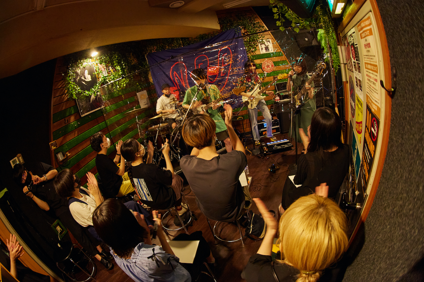 イベントはメンバー登場&挨拶後、ライブ演奏からスタート。飛沫防止のためメンバーと参加者はビニールシート越しという形ではあるが、ほぼプライベートライブと言っても過言ではないライブとなった。「歩く花」「万事思通」を披露したあとは、ファンからリクエスト曲を募るというやりとりも。参加者はコロナ対策で声を出せないため、事前に用意されていたスケッチブックにリクエスト曲を書いて掲げるというシステム。ライブの感想や質問もスケッチブックに書くスタイルだったが、メンバーのファンへの感謝と、ファンからの“おめでとう”の気持ちが伝わり合う、アットホームな雰囲気でイベントは進行。また、YouTubeチャンネル登録者数10万人で手にすることができる“銀の盾”は準備が間に合わず、メンバーがダンボールで手作りした“銀の盾”が会場に飾られていた。参加者はこの日限りのサイン入り「不革命前夜」グッズなどのおみやげや、NEEアイテムに溢れたスタジオ内を楽しんで、各45分間のイベントは終了した。