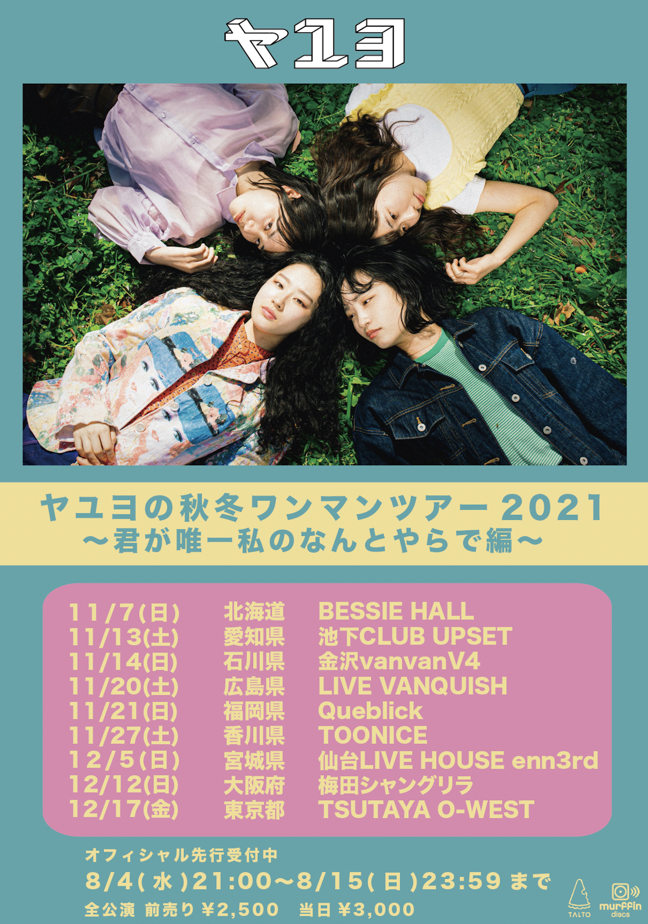 ヤユヨが11月7日(日)から、初の全国ワンマンツアー『ヤユヨの秋冬ワンマンツアー2021~君が唯一私のなんとやらで編〜』を開催する。