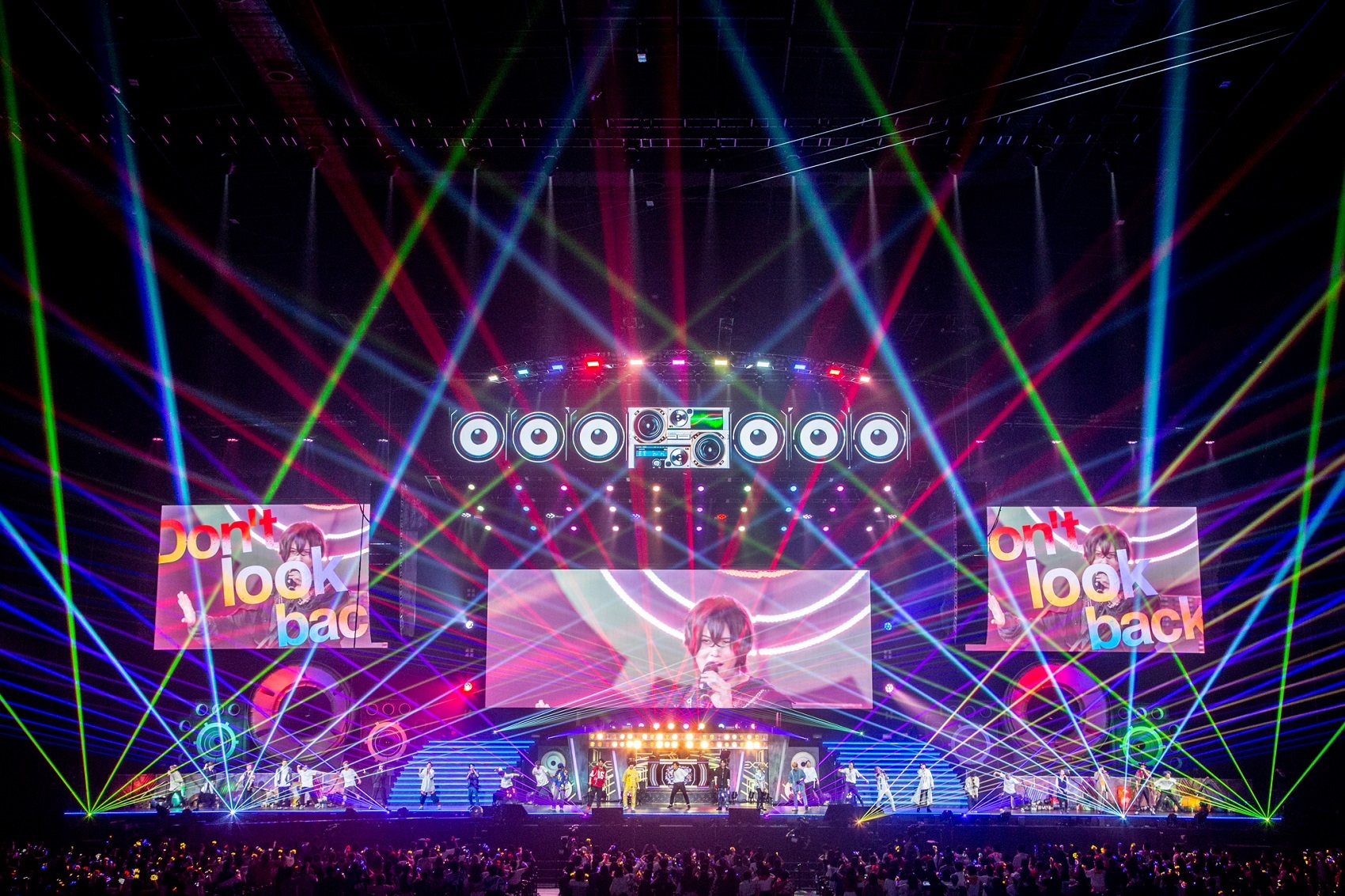 そしてDJ-U-ICHIとヒプマイのダンスチームである“D.D.B”のコラボパフォーマンスに続いては、ステージに中王区が登場、リフト上の高いステージから睥睨するような視線を会場に送り、この世界の支配者であることを表明。そして「Femme Fatale」を披露し、東方天乙統女を演じる小林ゆうが「ラストスパートです。戦士たちよ、正々堂々戦うのです」と各ディビジョンに呼びかけ、<<2nd D.R.B>>のバトル曲3曲が披露された。