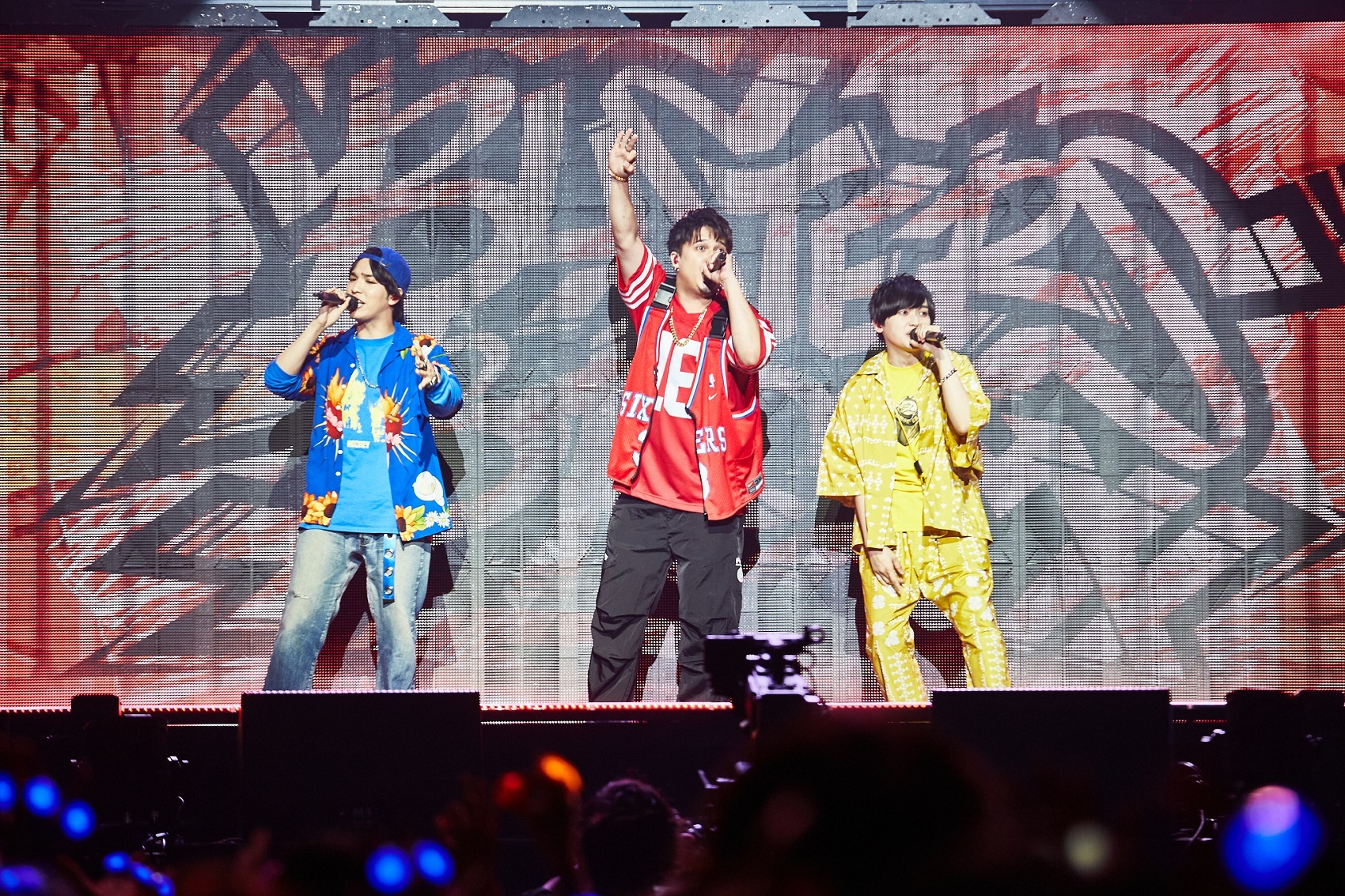続くヨコハマ・ディビジョン“MAD TRIGGER CREW”はヒプマイ楽曲の中でも屈指のハードな雰囲気を帯びた「シノギ(Dead Pools)」を披露し、碧棺左馬刻役の浅沼晋太郎は会場に向けて「この景色、これからも忘れねえよ」と呼びかける。