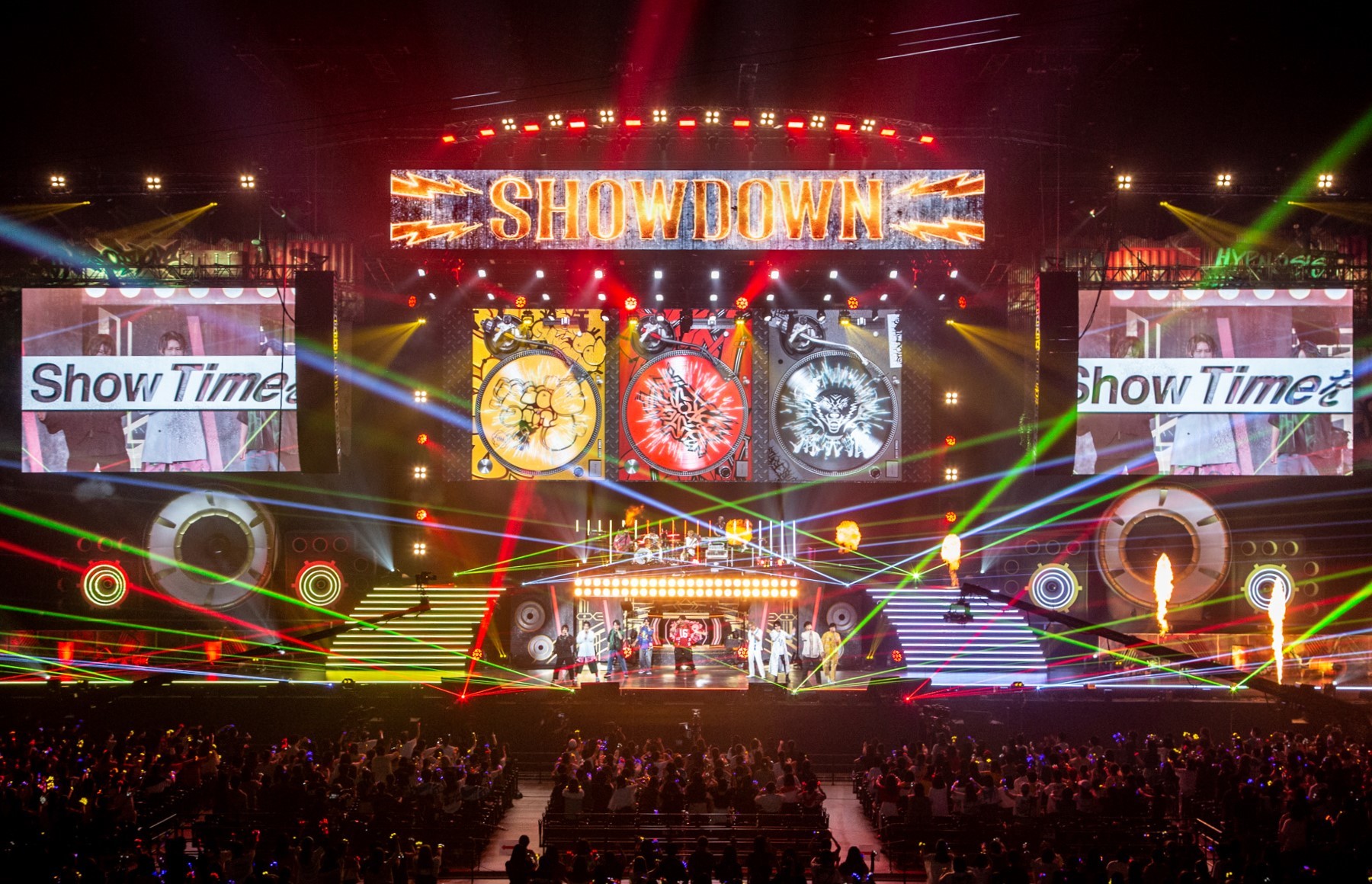 ステージからヒプマイメンバーが去ると、バンドセットと共にDragon Ashが登場。「New Era」「Fly Over feat.T$UYO$HI」に続いて、Dragon Ashがプロデュースした<<2nd D.R.B>>の初戦勝利チームであるBuster Bros!!!・麻天狼・Fling Posseによる「SHOWDOWN」を披露。Dragon Ashの生演奏による新曲のパフォーマンスという超豪華な展開には、会場からは大きな拍手が巻き起こった。