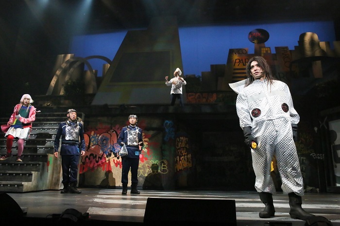 オリンピックやってるスタジアムの目と鼻の先で屁が出るロックミュージカルが幕を開けます。毎度のことですが、役者10人じゃ足りなかった。ずっと着替えてるか、フザけてるか、歌いながらフザけてるか。休憩ナシ2時間15分を目指してたけど、試しに休憩入れたら、主に50代の出演者の疲労が緩和され、後半のクオリティがグッと上がったので、すいません、休憩入れさせて頂きます。これ、本当に未来の話か?ってくらい時事ネタ多めです。すいません。