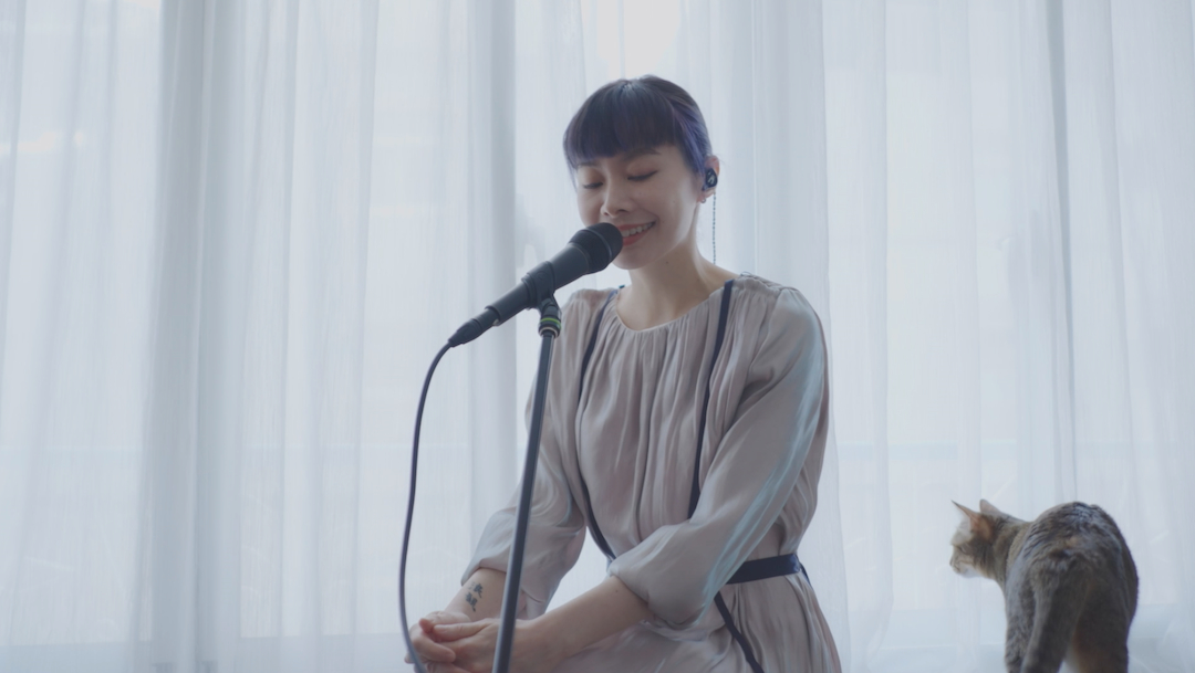 今回のオンラインコンサートでは、チェン・イーノンとゲストで出演したプロデューサー兼ミュージシャンのChunhoが、それぞれ事前に収録した映像を公開。生活に寄り添った表現を行うため、自宅のシャワーヘッドの下で歌ったり、便座に座って弾き語りしたりしていた。彼女が飼っている猫もカメラの前に出演。その可愛らしい姿はリスナーに癒しを届けた。
