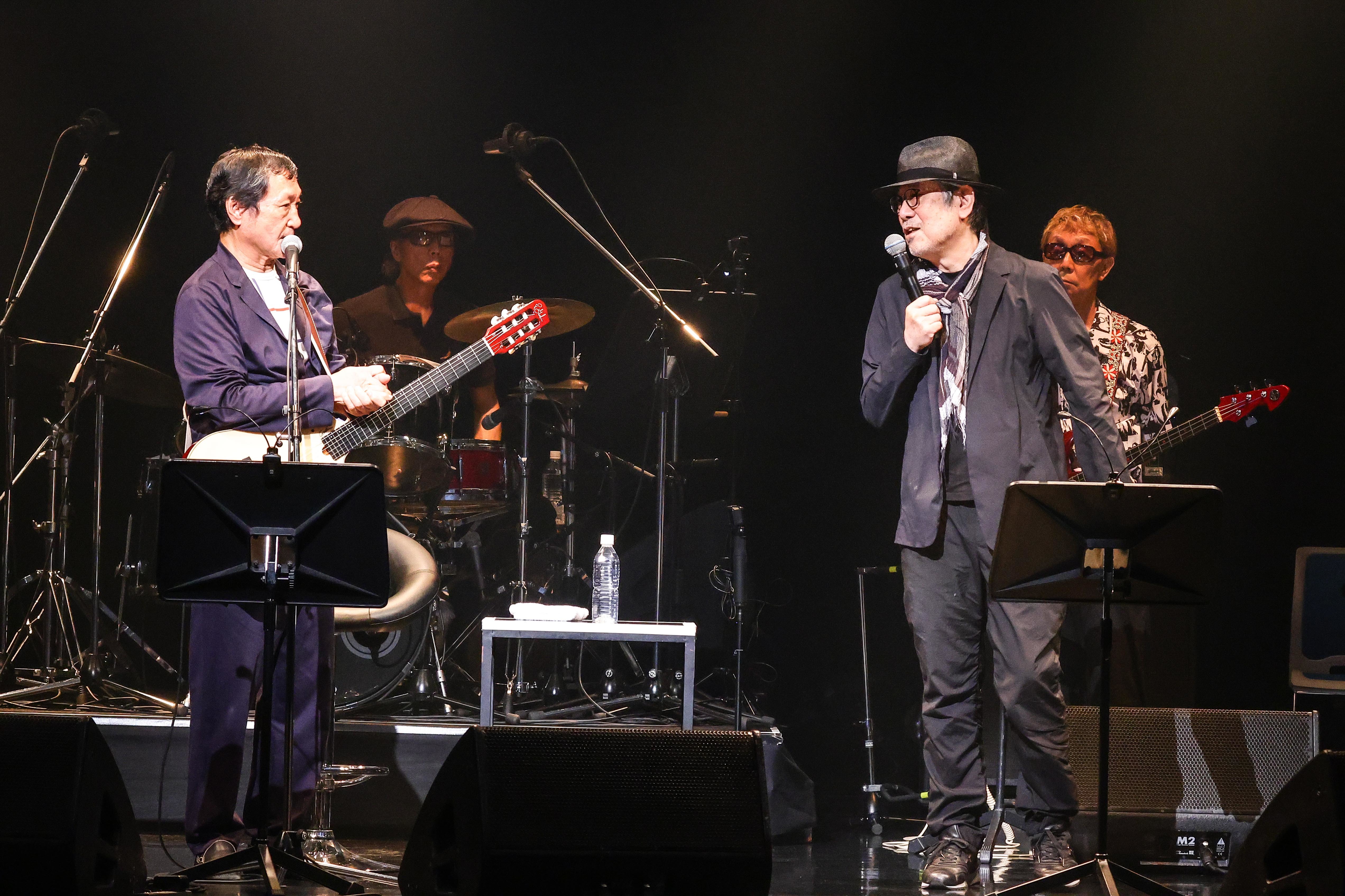 ライブではまずは宇崎竜童がダウン・タウン・ブギウギ・バンドの「サクセス」を弾き語りで披露。ブルージーな歌唱を響かせると、次曲は南がリクエストした「港のヨーコ・ヨコハマ・ヨコスカ」を2人で。渋みを効かせたブギに乗せ、お約束の語りを交互に歌い上げる。同じ時代に活躍した2人でも、この共演はかなり貴重だろう。