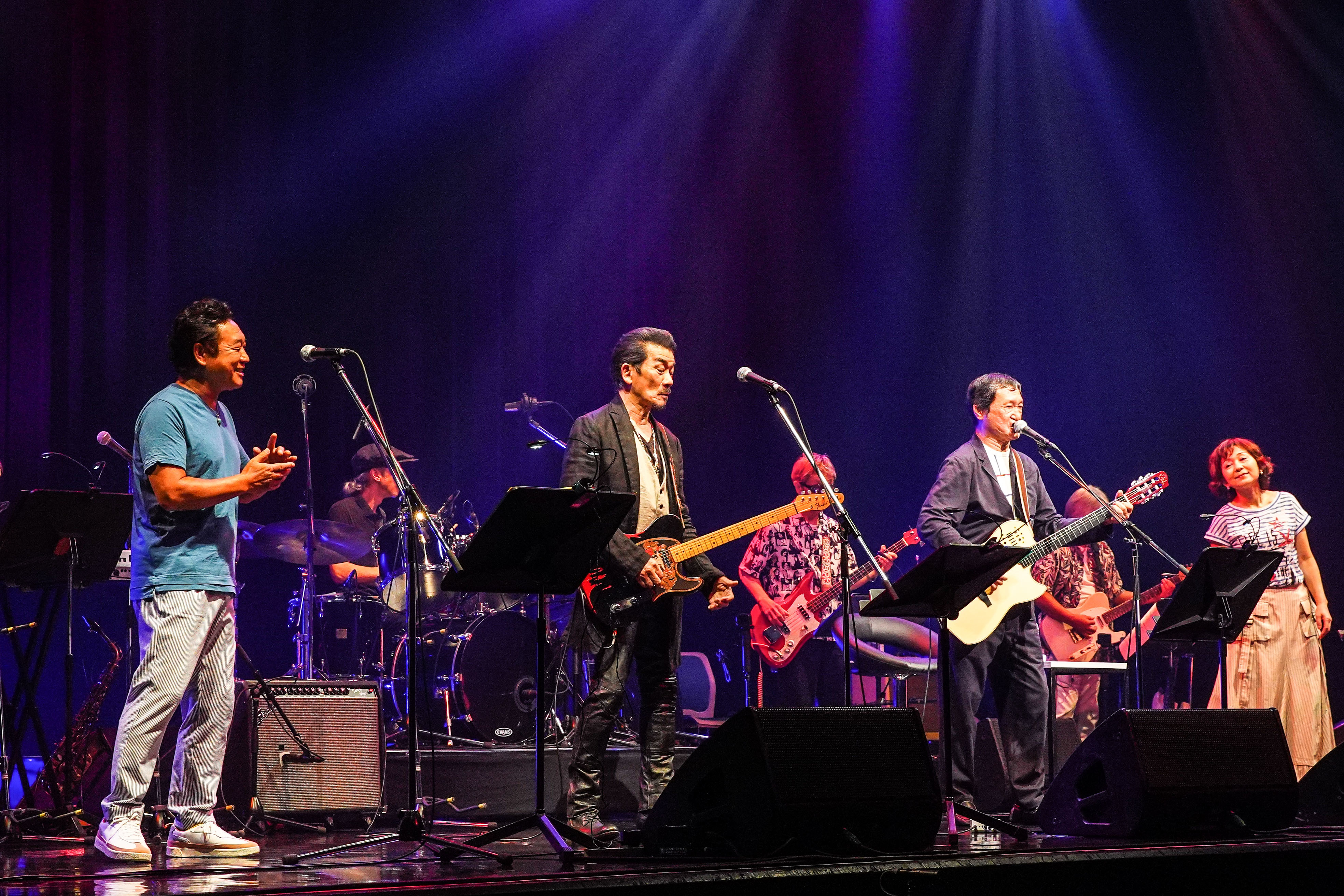 ライブも終盤、FM COCOLOのDJ、マーキーと加美幸伸が登場し、これまでのステージに改めて称賛の言葉を贈る。そしてアンコールでは、南佳孝の名曲中の名曲「スローなブギにしてくれ」、宇崎竜童が作曲を担当した「さよならの向こう側」(山口百恵)を出演者全員で歌唱。贅沢すぎるステージに観客は声の代わりに大きな拍手で応えていく。