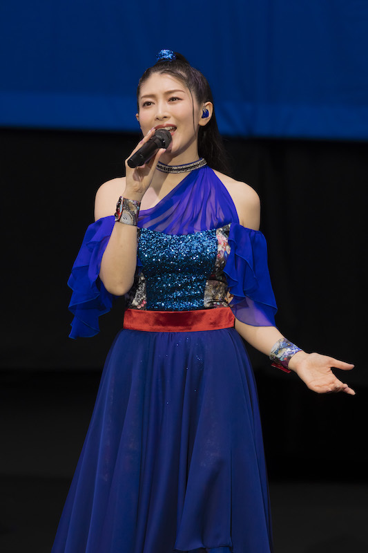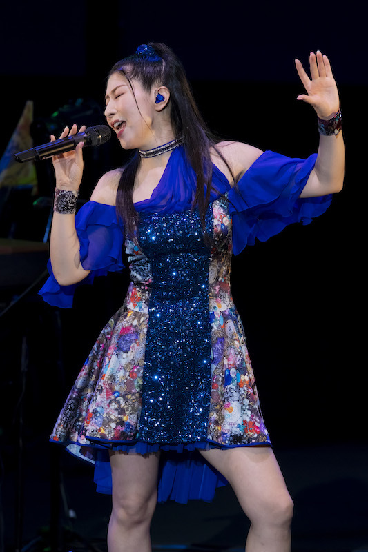 そして「Theme of CMB」を終えると神秘的なサウンドが会場を包み込む。ステージに舞い戻る茅原、青の衣装に身を包んだ彼女がステージ戻って最初に披露したのは「NEO FANTASIA」だった。ここまでのライブとはまた違った魅力、そのミステリアスな空気を纏って後半戦はスタートしたのであった。