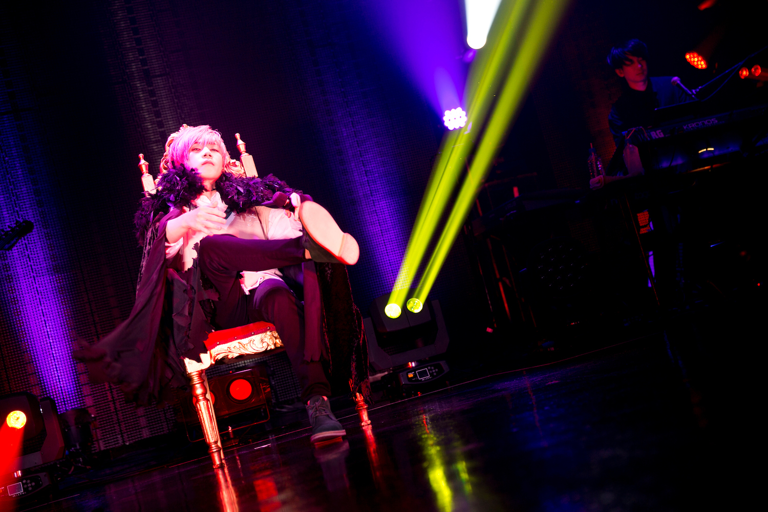 闇夜にとけこむような羽根つきの漆黒マントを羽織り、ますますよく似合う玉座にて、圧倒的な“王者感”を漂わせた「KING」。<手を>という歌詞に合わせ手を伸ばし、ロングトーンを真っ直ぐ響かせた「テオ」。ダンサーと艶っぽく絡むシーン、憑依されたかのような笑い声も印象的な「スカーレ」。序盤とはガラっと異なるダークなうらたぬきは、ゾクっとするほどかっこいい。