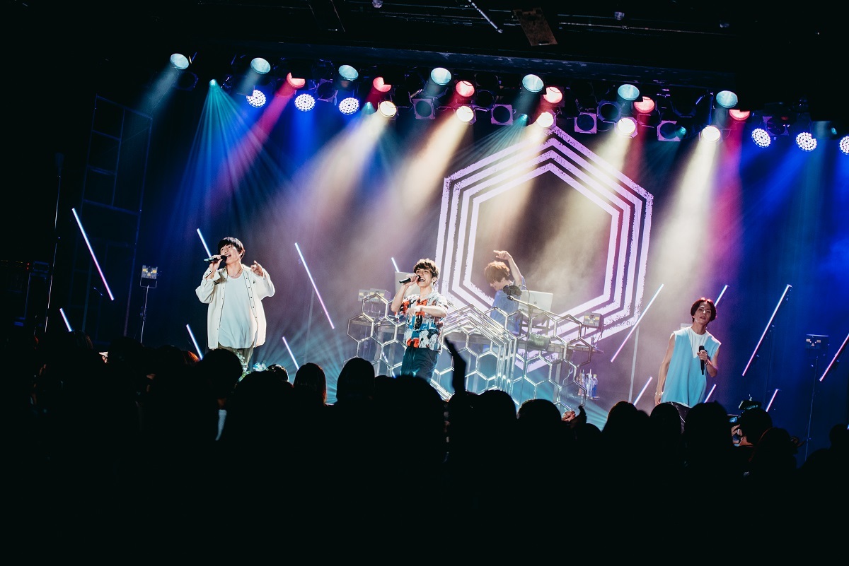 たぶん照れ隠しだろう、ざっくばらんな言葉と笑顔でBeemerの思いに応えるSATORU。そしてオリコンウィークリー6位、LINE MUSICアルバムランキング1位を記録したアルバム『余光』から、この日が初お披露目となる新曲「Everglow」へ。端正なキックの四つ打ち、独特の浮遊感、ファンキーなギター。クールなダンスチューンでありつつ、「みんなに会えるまでの期間に4人で思ったことを歌にしました」(U)という、等身大の歌詞が胸に沁みる。REIのラップがいいアクセントになっている。続く「花火」も、四つ打ちのダンスチューンと、ポップでメロディアスなJ-POPの要素を組み合わせた、THE BEAT GARDENの進化系。ボーカル3人の気持ちの入り方が半端ない。歌の表現と歌詞のメッセージで直球勝負。アカペラコーラスできれいに締める、エンディングも完璧だ。
