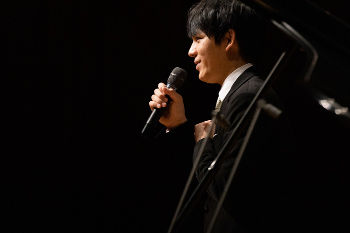 休憩を挟み、後半はベルクのピアノ・ソナタでスタートした。演奏に入る前に「第一次世界大戦前夜、崩壊を予感させる不協和音が響きますが、ふと現れる美しさを楽しんでいただきたい」とコメント。緩急を豊かにつけ、音に方向性を持たせながら叙情的に聴かせたその演奏は、作品への敬意を存分に感じさせるものだった。