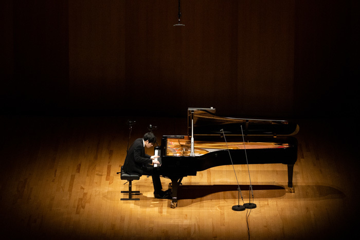 幕開けはリストの「ラ・カンパネラ」だ。いつもはアンコール・ピースとして披露することの多いこの作品を、今回はあえて冒頭で演奏した。やや緊張気味であったが、主要メロディーやバスラインを丁寧に歌いあげ、リリカルかつドラマティックな演奏で、この作品の繊細さを示した。