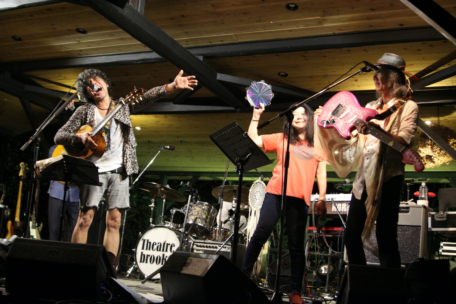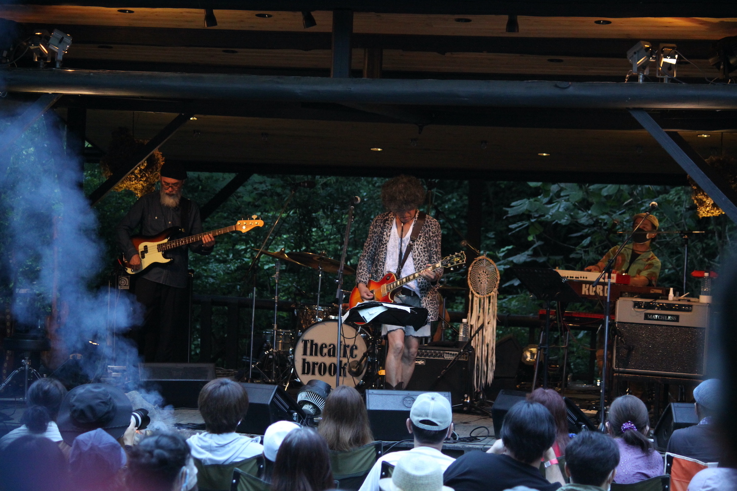 谷川のせせらぎ、セミの鳴き声などをBGMに、キーボードが幻想的な音を奏で出す。イベントのラストを飾るシアターブルックの4名がステージに上がった。
