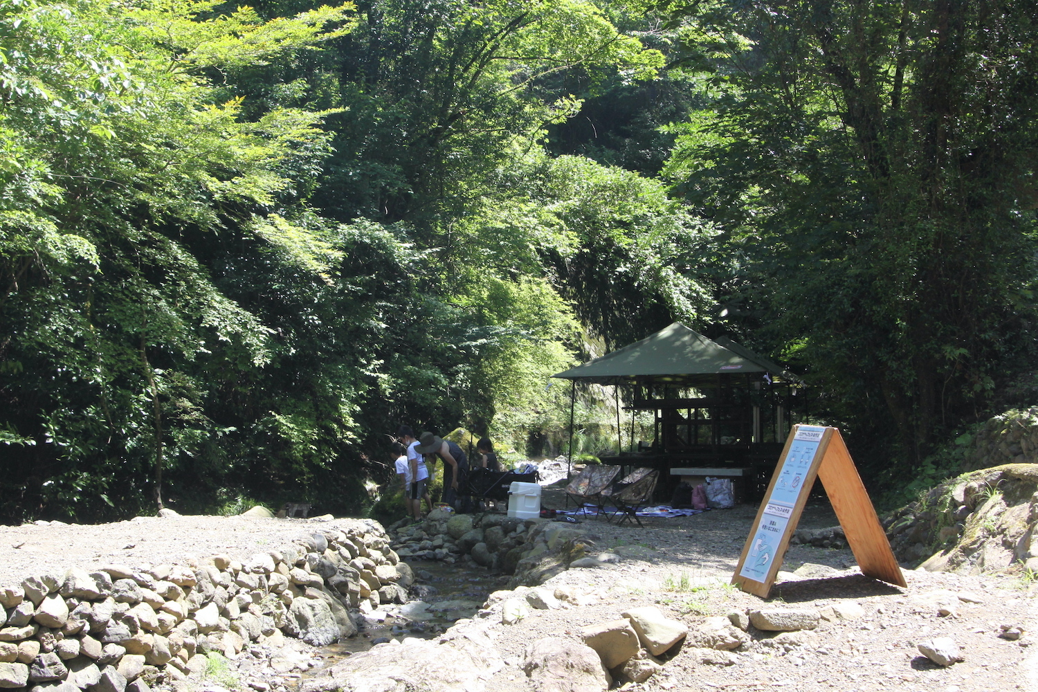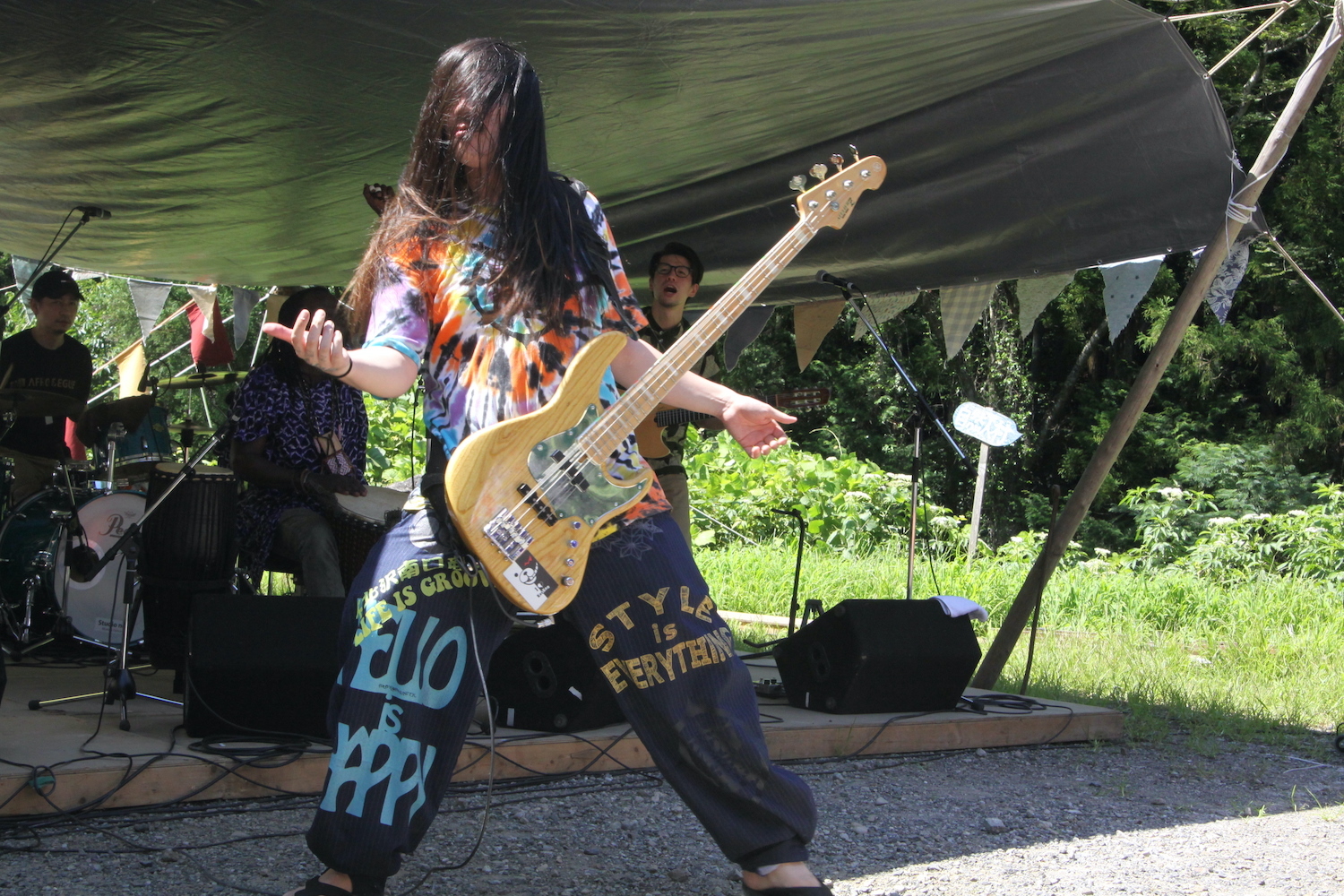 イベント当日は天候に恵まれ、昼過ぎには気温30度を超えていた。頭上には限りない青空、ステージ周辺には森や川。自然溢れる素晴らしいロケーションである。
