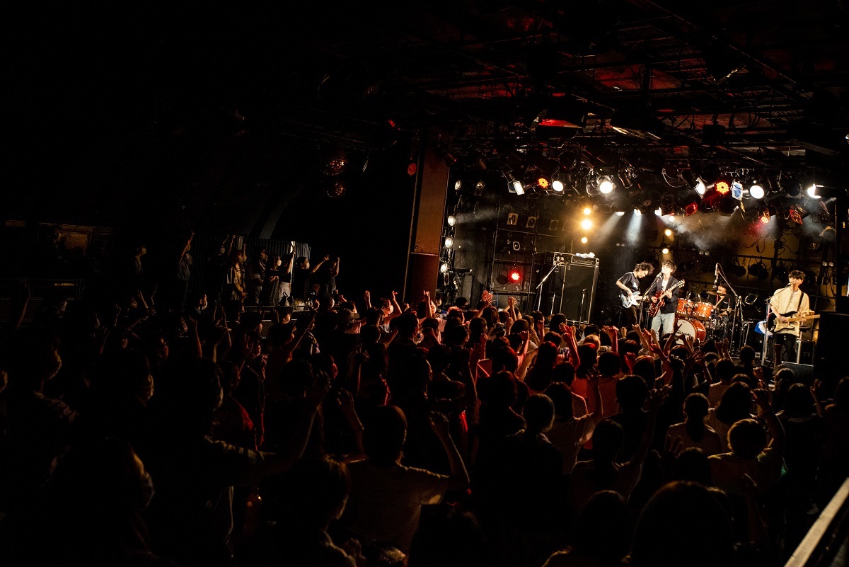 「やつらがどれだけ羽ばたけるかは俺ら次第。滑走路作ろうぜ!」(鈴鹿)と後半に入ると、ギター2本のカッティングが気持ちいい「SOMA」で爽やかな風を吹かせる。一際ポップな「SMILE SMILE」は、鬱屈した日々を抜けた先にある希望を描いた曲で、拳をグッと握りながら歌う米田の姿が印象に残った。「Eternal Sunshine」は懐の深いバラードで、“ララララ”のコーラスがあるアウトロで大団円を迎えると思いきや、バンドのサウンドはまだまだ勢いを増していく。観客同士十分に距離をとるため、フロアに椅子が用意されていたこの日。最後のMCでは米田が「座席どう?」と観客に投げかけ、「その座席をいつか取っ払うために今こうして(ライブを)やってます。元通りにはならないにしても、心地のよい場所に戻れるようにやっていきたいと思いますので、よろしくお願いします」と、ライブを止めない意義を改めて言葉にした。