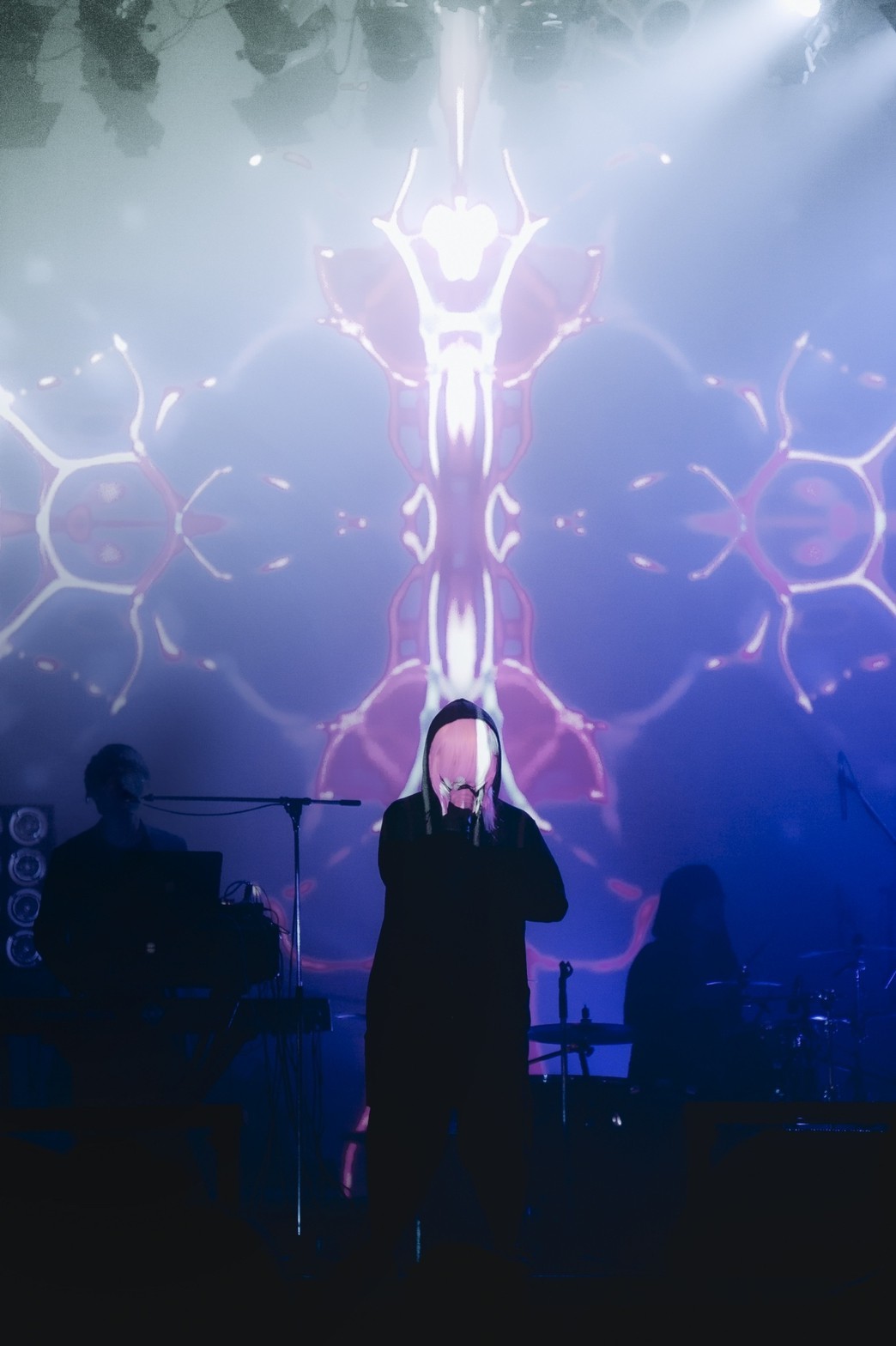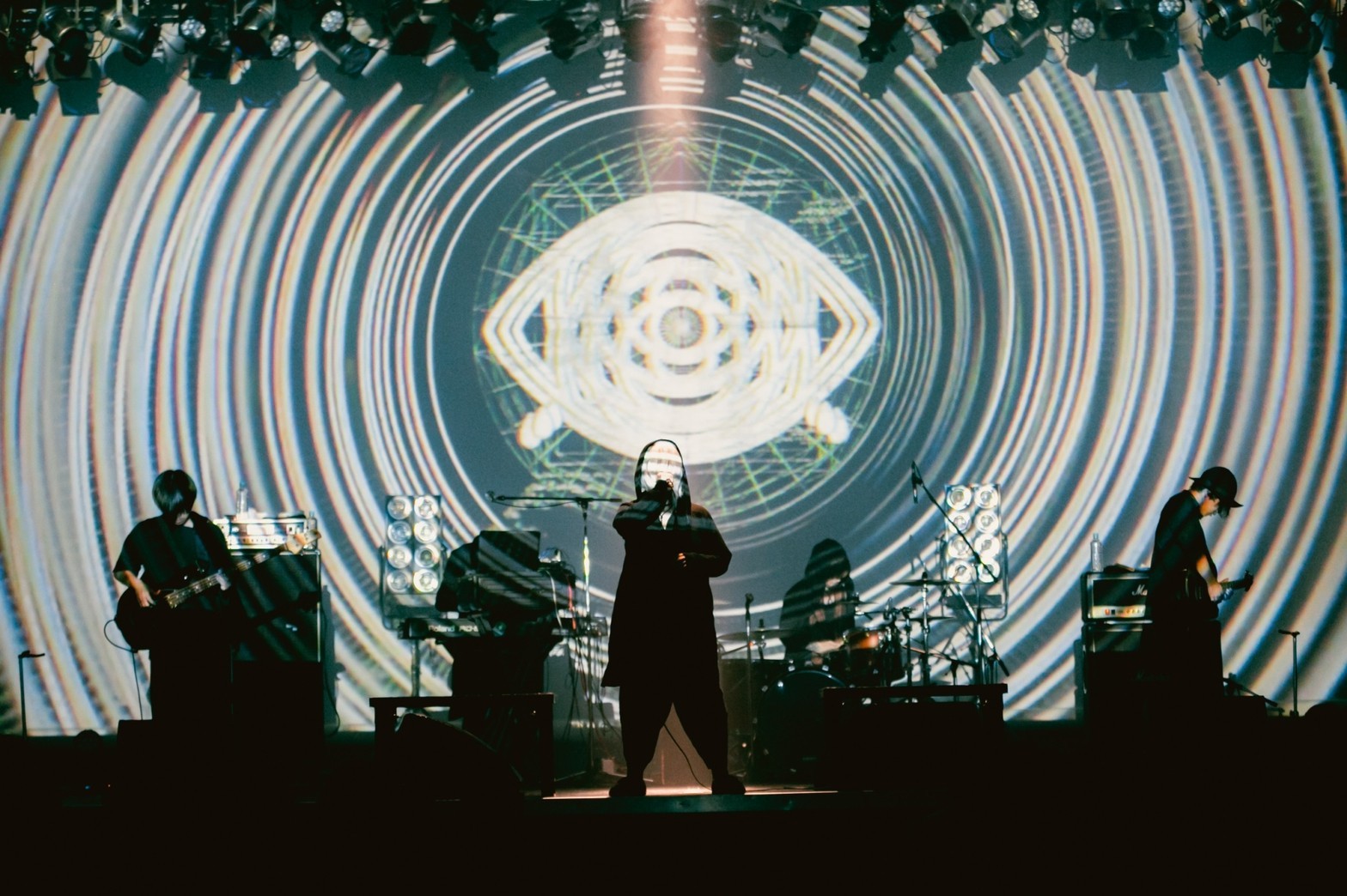 一見、絶望的にすら感じる言葉に添えて、「クオリア」ではすさまじいフラッシュライトをかいくぐり、闇の中にあるほんの一閃の光を歌う。極彩色の照明と目まぐるしく変わりゆく映像が楽曲のドラマを際立たせた「夕立ち」でも、座したまま拳を握り締めステージに惹きつけられるオーディエンスを前に、一心に己の音を鳴らし続ける5人。ライブとして安易にイメージされる熱狂はここにはない。だが、「偽物の宴」「紫陽花」と立て続ける光景には、ここにしかない没頭と刺激、そして浄化がある。背中を押すのではなく隣にいるような眩暈SIRENの世界観に、気付けば心地良く引きずり込まれている。