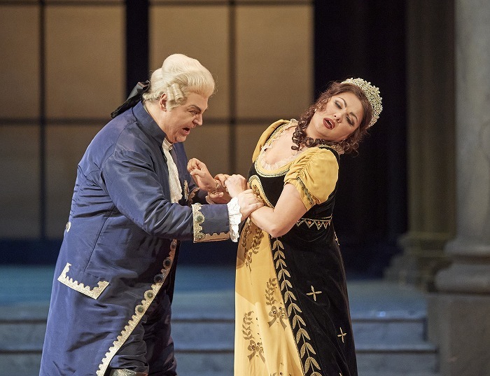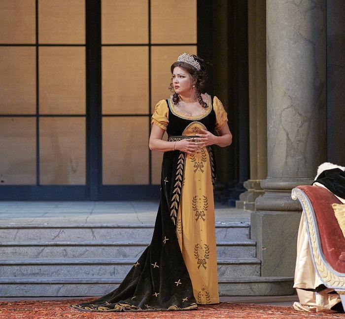 演目は、2020年12月に上演された『トスカ』。作曲家プッチーニの大傑作であり、同劇場で600回以上、上演されている不朽の名作である。主演のトスカを演じたのは、オペラ界の女王、アンナ・ネトレプコ。嫉妬深く、感情豊かなトスカを熱演し、名曲「歌に生き、恋に生き」では、圧倒的な演技力と歌声を、劇場に轟かせた。トスカの恋人役のカヴァラドッシ役には、ネトレプコの実の夫でもあるユシフ・エイヴァゾフ。トスカと違い、気弱で繊細な役を好演し、終盤の見どころである名アリア「星は光りぬ」 では、悲壮感に満ちた見事な歌声を響かせた。ネトレプコとエイヴァゾフによる、ぴったりと息の合った二重奏にも注目だ。