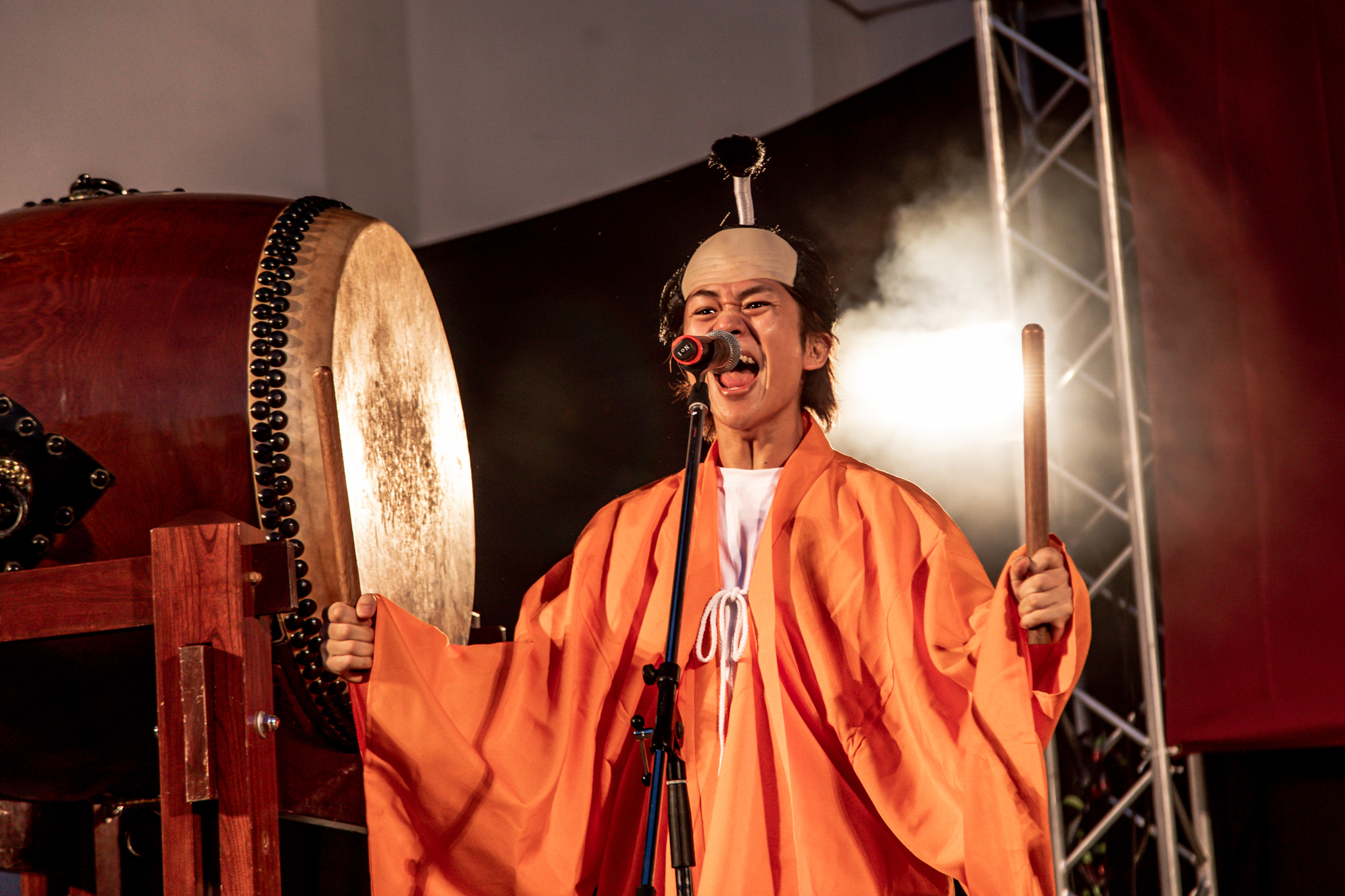 幕間にはセイヤがオレンジ色の殿様姿で再びお出まし。フルスロットルで咆哮しながら、弍番風呂・ORANGE RANGEの名をコールする!