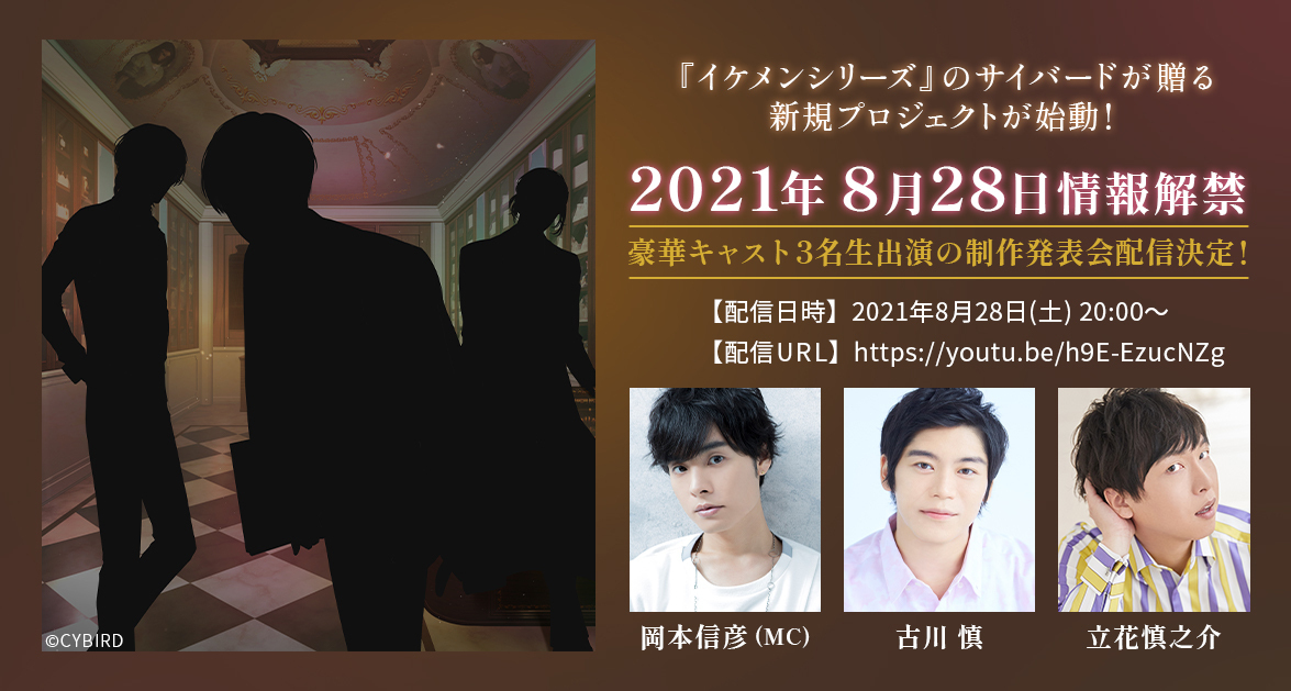 岡本信彦・古川 慎・立花慎之介が出演する、サイバードの女性向け新規プロジェクト制作発表会が、8月28日(土)20時よりYouTube Liveにて生配信されることが分かった。