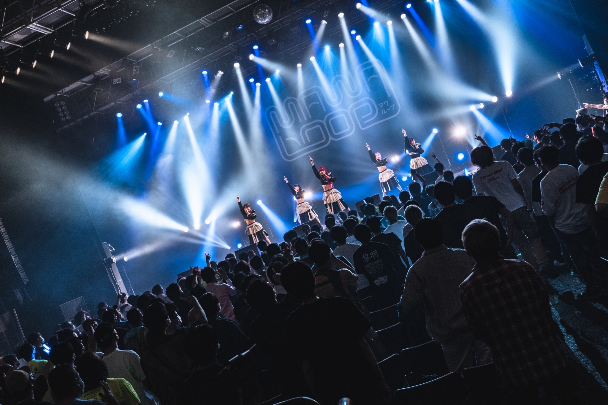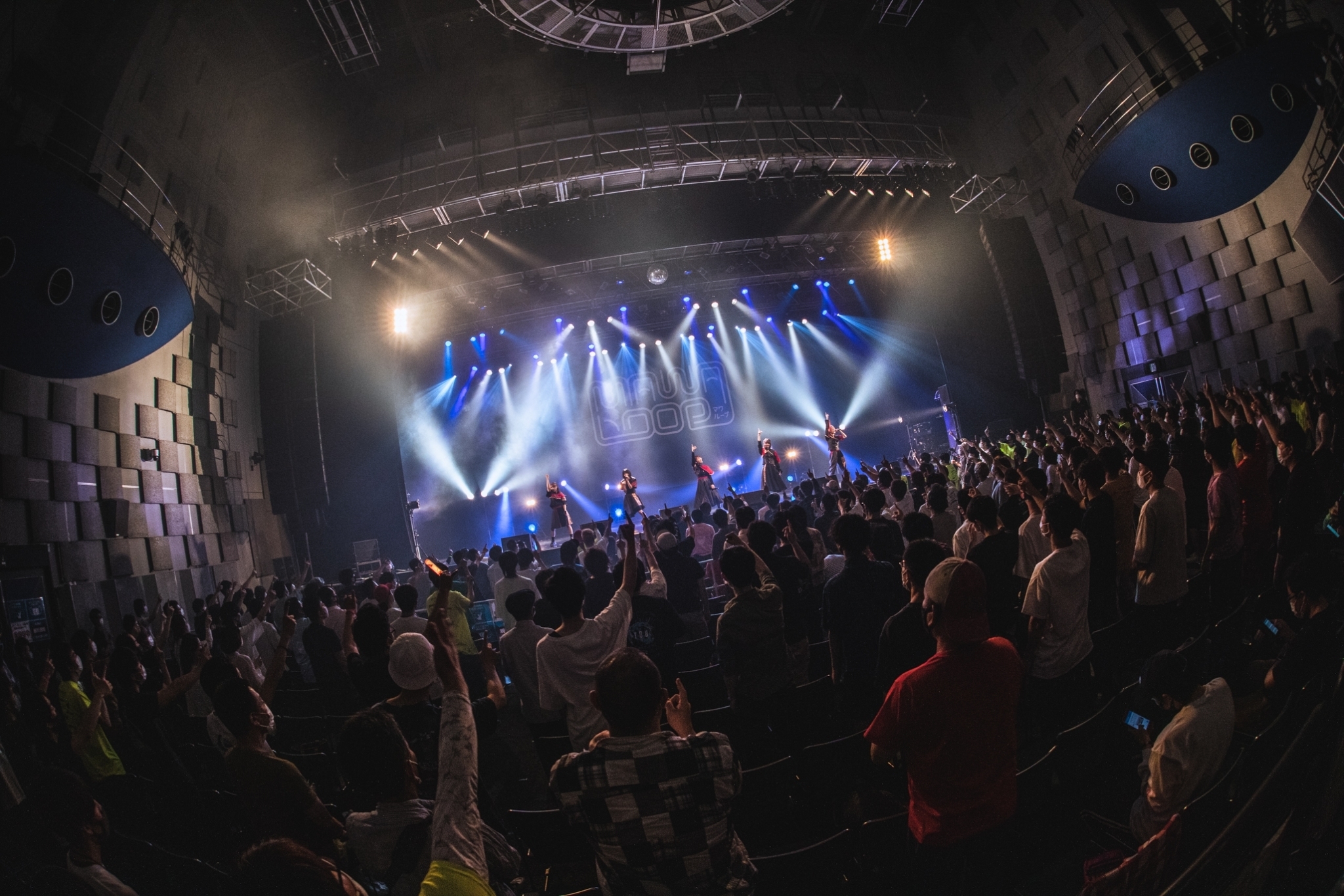 従来であればとんでもない盛り上がりを見せるMAWA LOOPだが、今回1階はすべて椅子席となっていて、通路での観覧は禁止。もちろん、ドリンクカウンターでアルコールは扱っていない。転換中に談笑している人はいるものの、昨今の常識から外れるような場面を目にすることは一度もなかった。自分たちの居場所を守るという意識が十分根付いているんだろう。