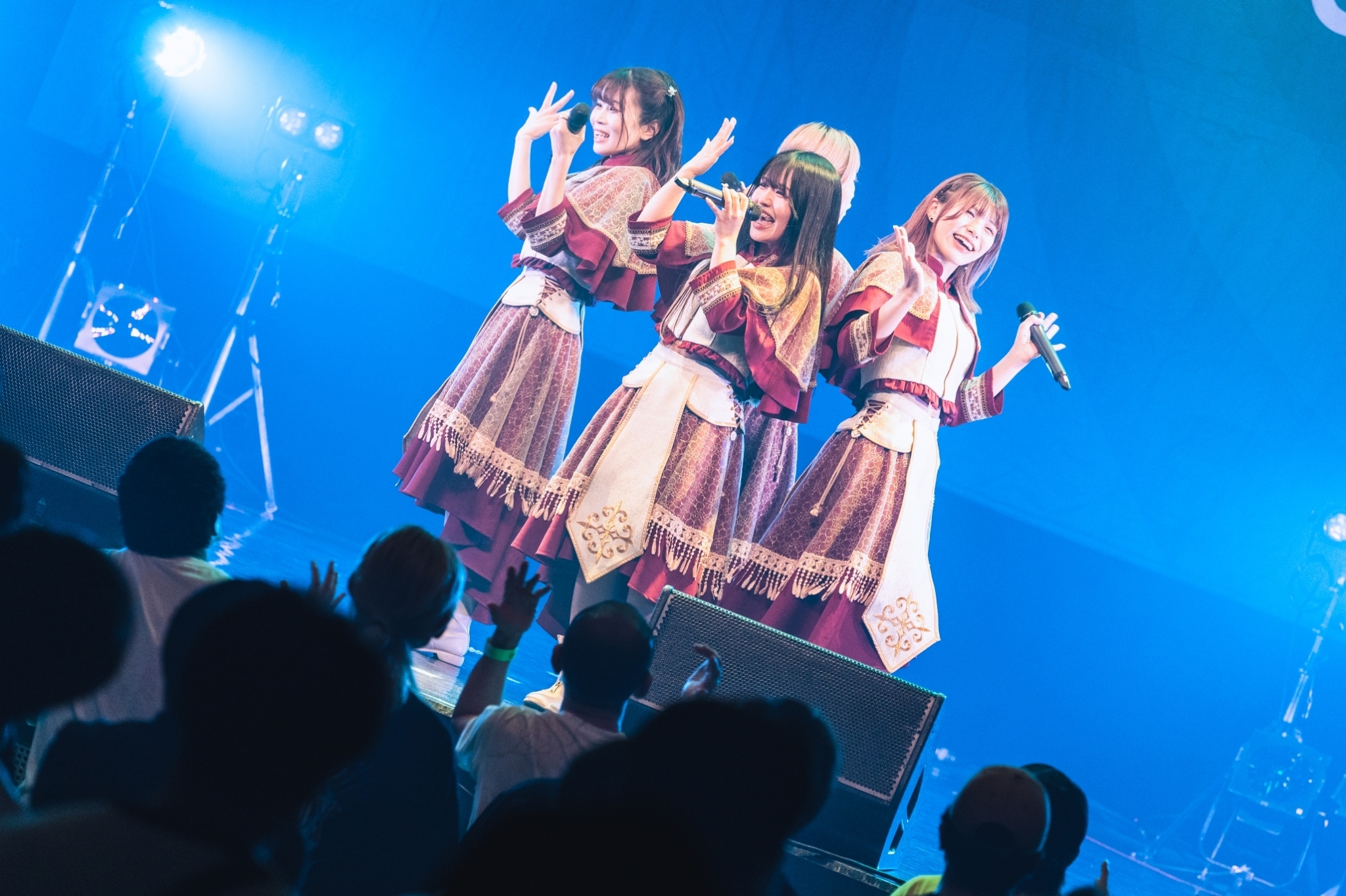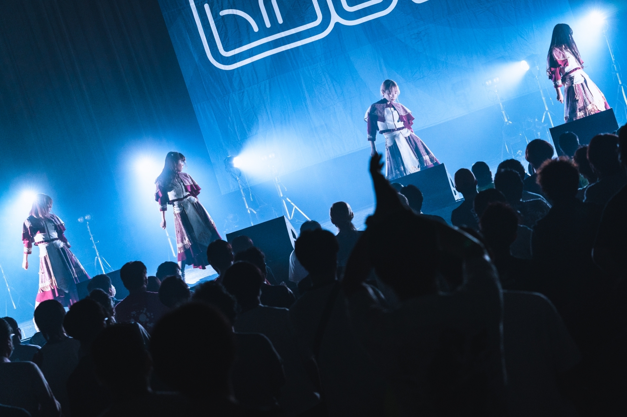 何よりKolokolは楽曲のクオリティが圧倒的に高く、それを特徴のある4人のボーカルがカラフルに彩る。「Rascal」では2階席の観客が一斉に後方のスペースに躍り出て振りコピを始めた。もちろん、ソーシャルディスタンスをしっかり意識しながら。そして、凱歌のように華々しい「Fanfare」まで30分の中でしっかりストーリーを作り上げ、巧みなステージ運びでエンディングを迎えた。