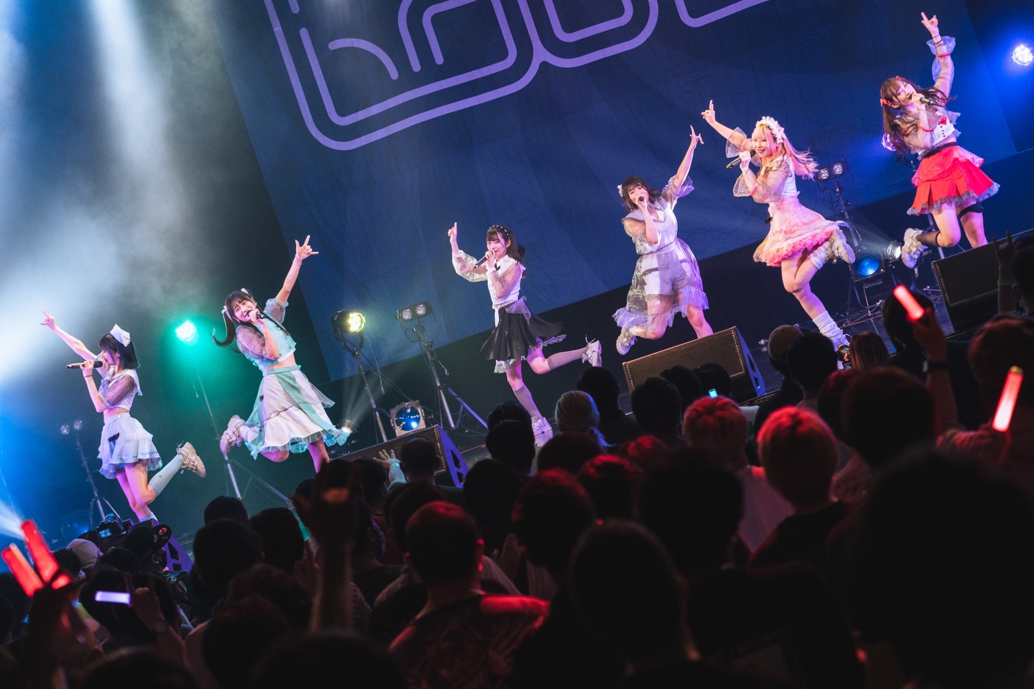 これまでの雰囲気をガラッと変えたのはヤなことそっとミュートの4人。今年5月に新メンバー彩華が加入。大阪でのライブは新体制になってから初となる。まだ不慣れな点も多いだろうが、そんな様子はまったく見受けられなかった。それは1曲目「僕らの小さな地図」から明らか。オルタナティブなロックサウンドながら、振付はコンテンポラリーダンスを取り入れたもの。個々の高いスキルと優れた表現力でより一層の輝きを放つ。メンバー間の連携も見事だ。「Sing it out」でも気高さを感じさせるパフォーマンスに引き込まれつつ、キュートなMCとのギャップに緊張が解ける。